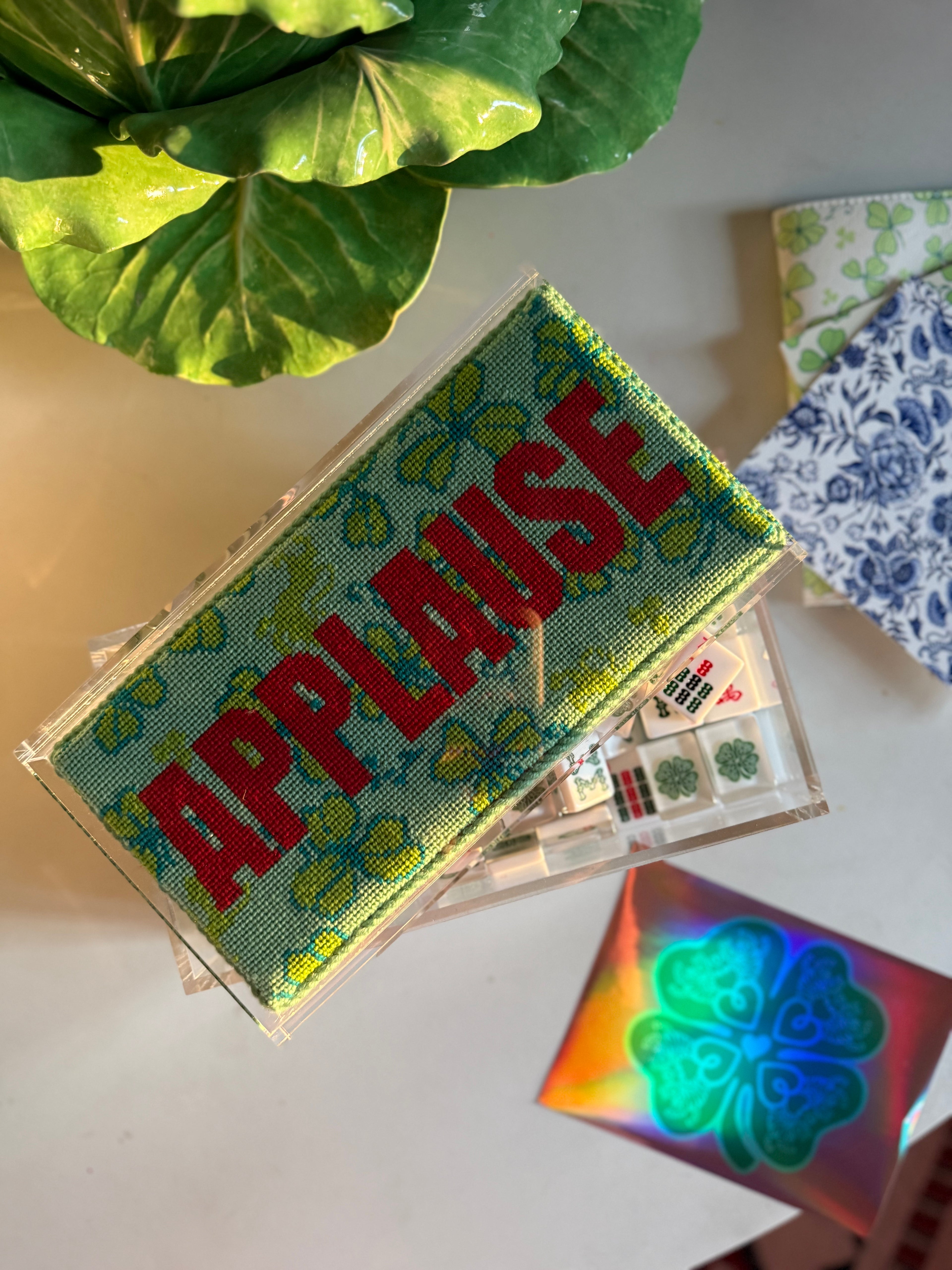 Roomy Leather Mahjong Tile Bag, MAHJ CLOVER