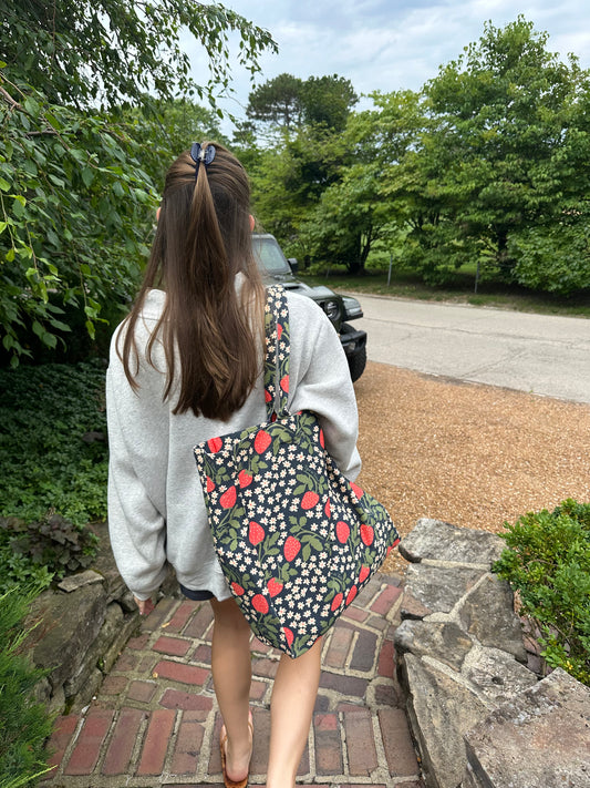 Jumbo Slouchy Denim Tote, STRAWBERRY