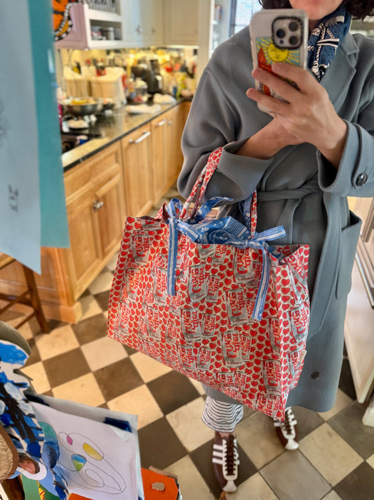 A collection of needlepoint accessories that are as luxe as your artwork. Project bags, stash trays and sturdy totes will keep your precious projects inspired and secure! Each is an exclusive Tigre de Tartán design, featuring various illustrations and trompe l'oeil prints by independent female artists and hand made in London, England.