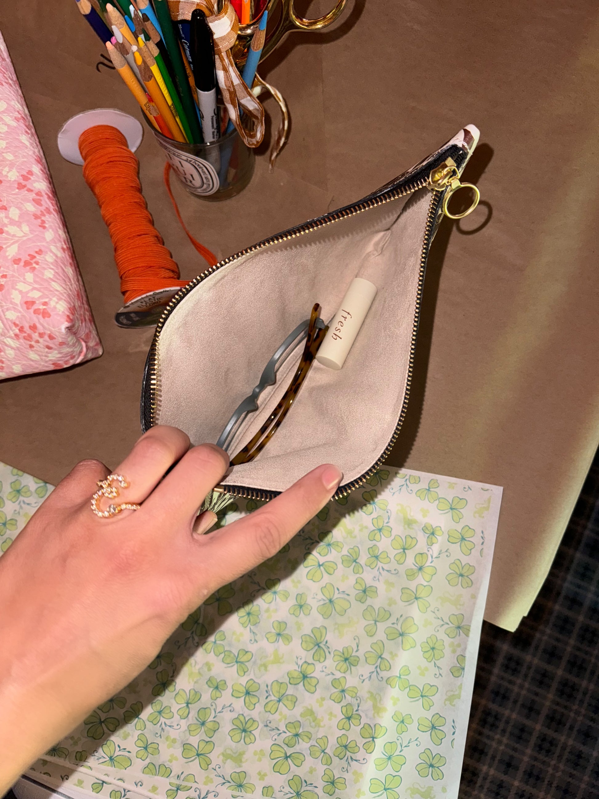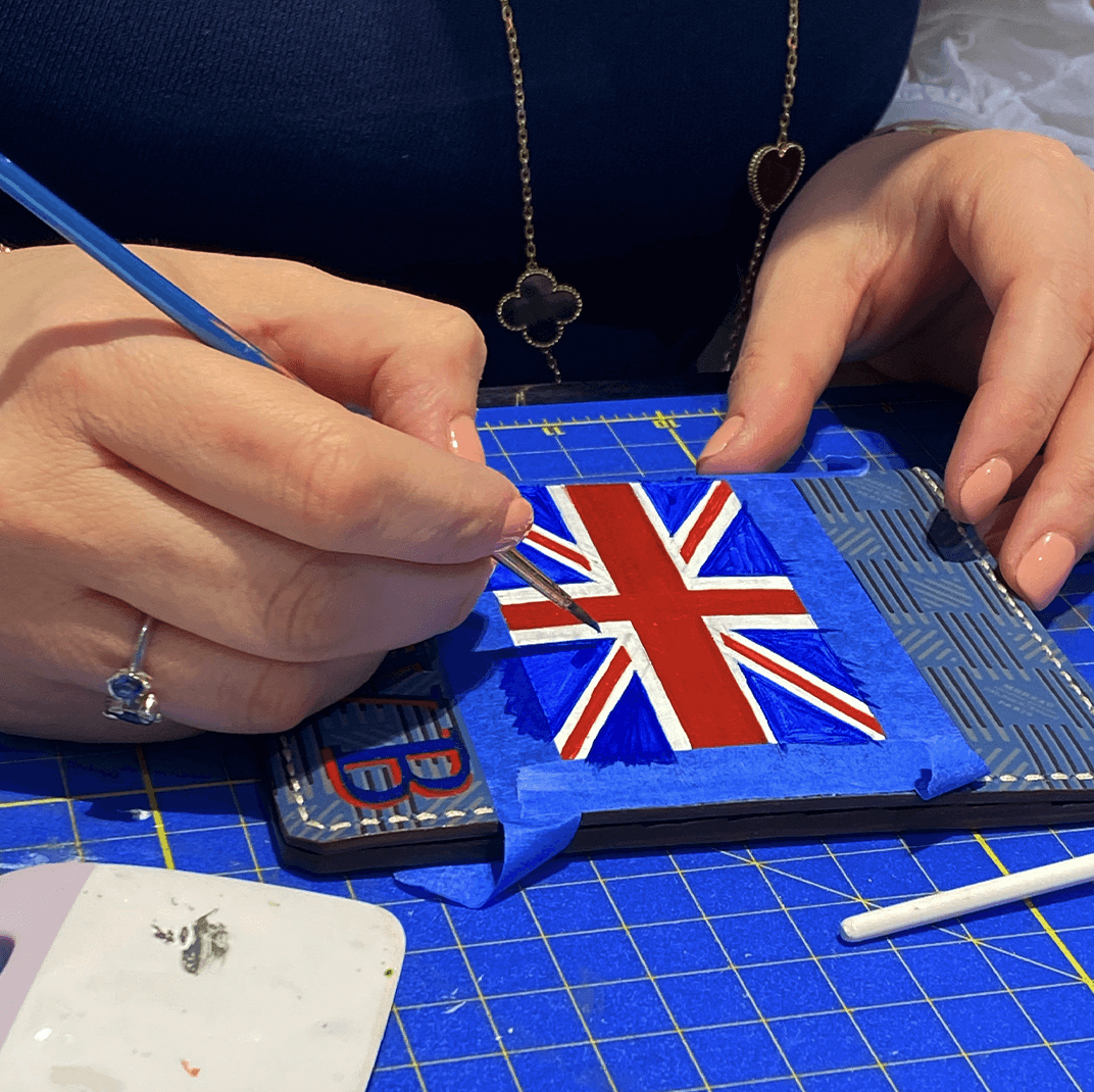 Tigre de Tartán is so excited to partner with design atelier Fait Á Main to bring you an inspired collection of original designs and custom paint personalization! Buy the bags as they are, or contact us after your purchase for a customization like none other. Fait Á Main's imaginative painters work with you to create not only monograms, but special symbols or icons like flags or pets- the sky is the limit! Our zipper pouch is a perfect canvas, crafted from smooth Nappa leather and hand made to order in England.
