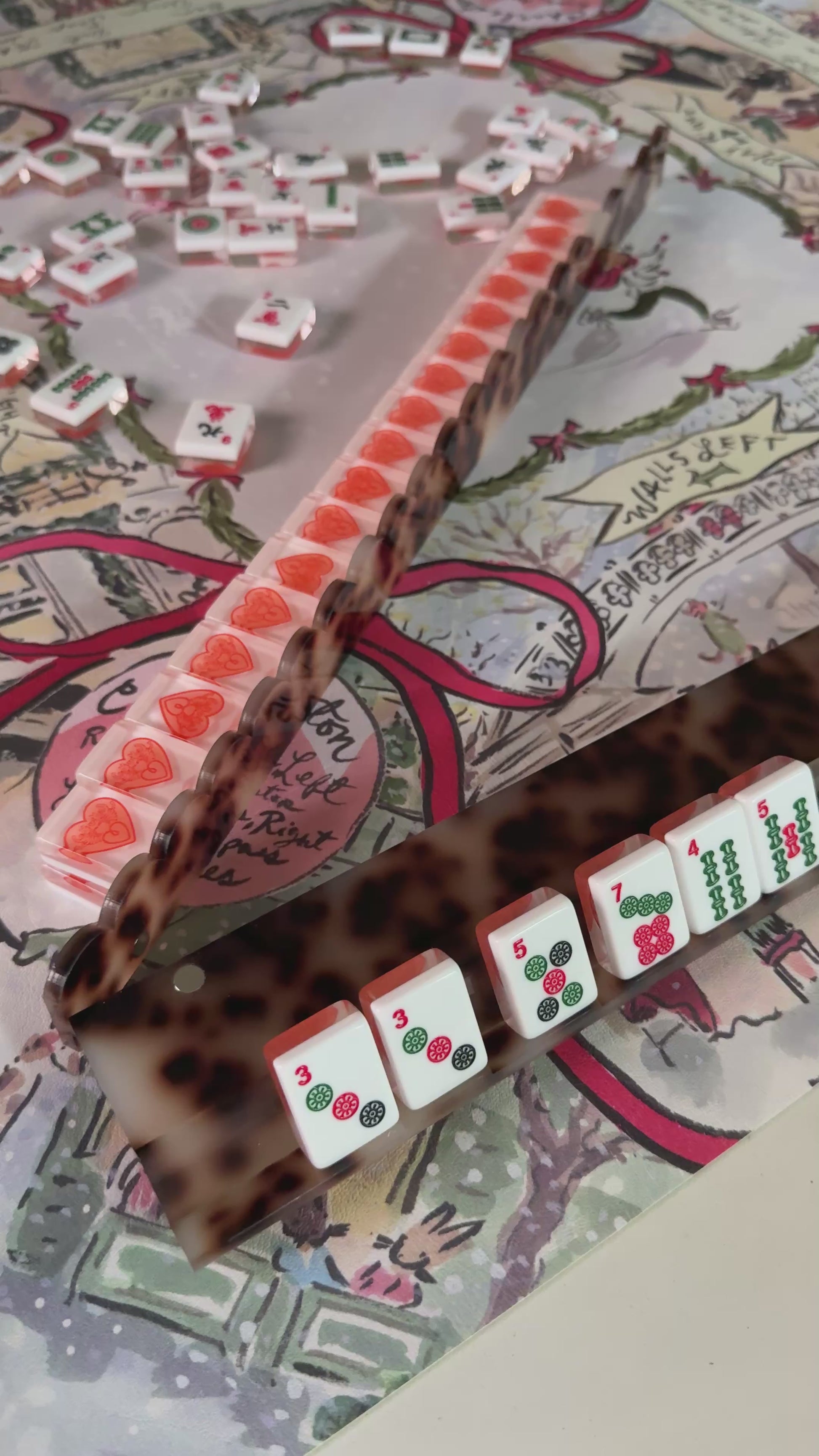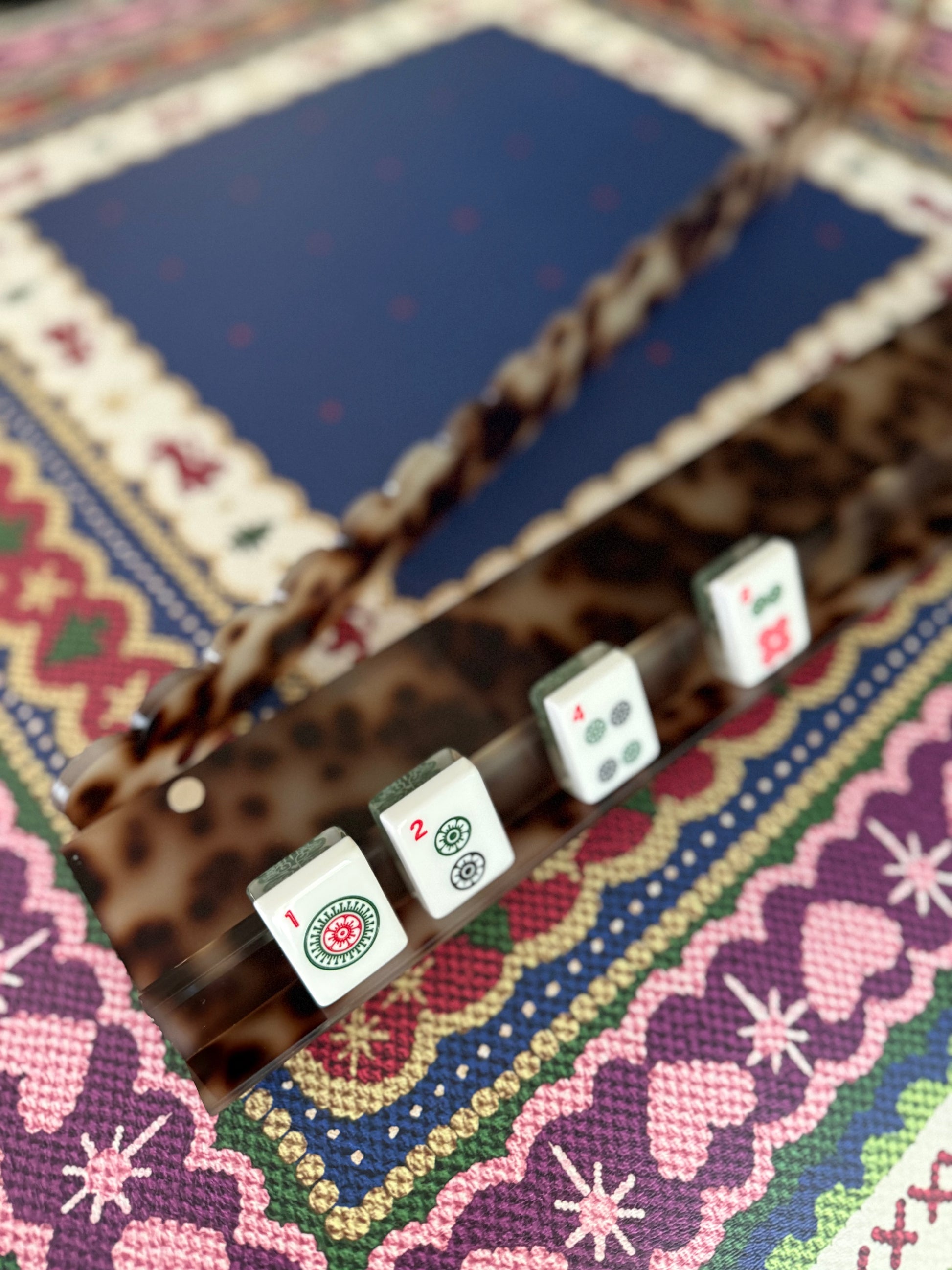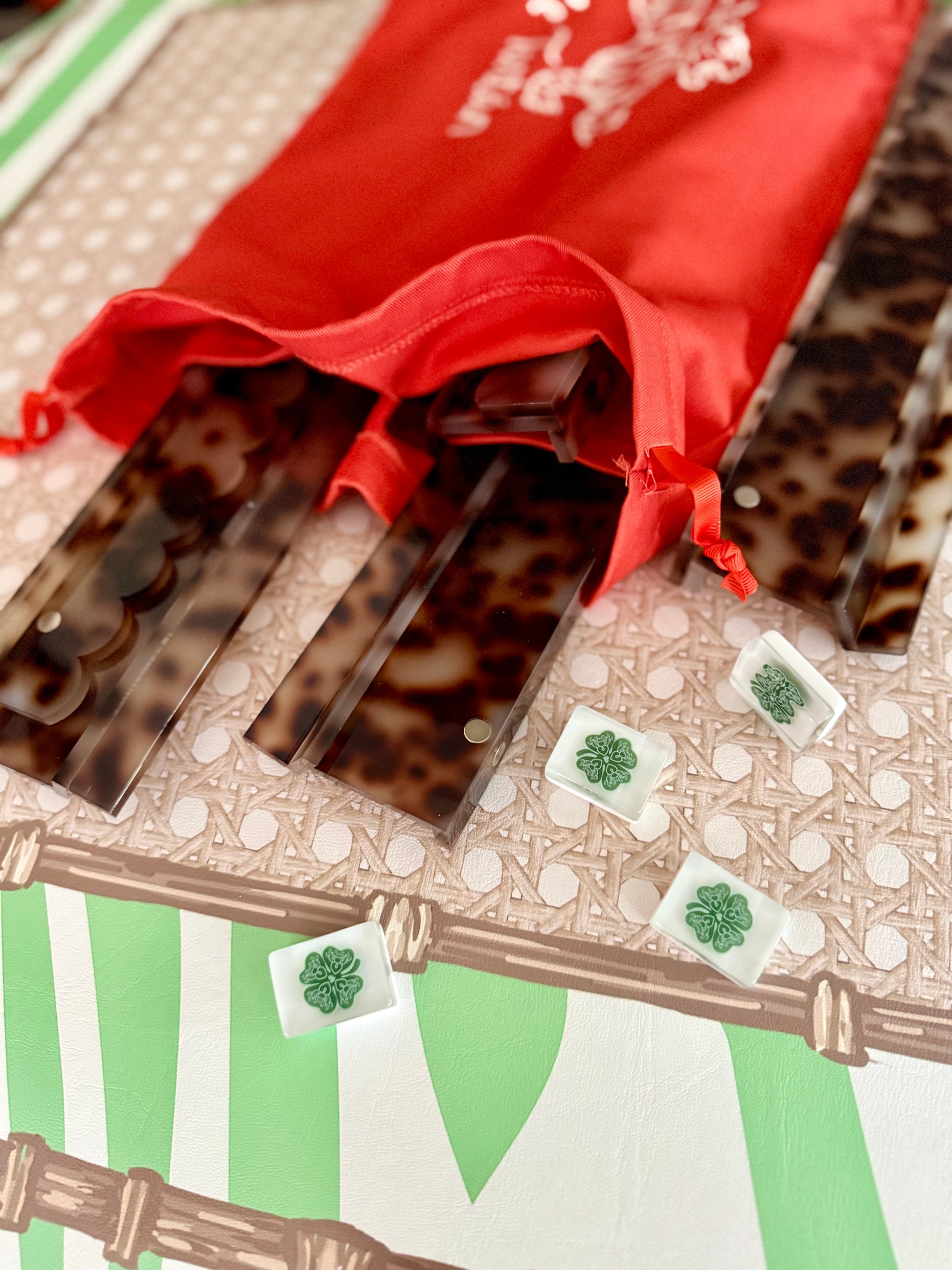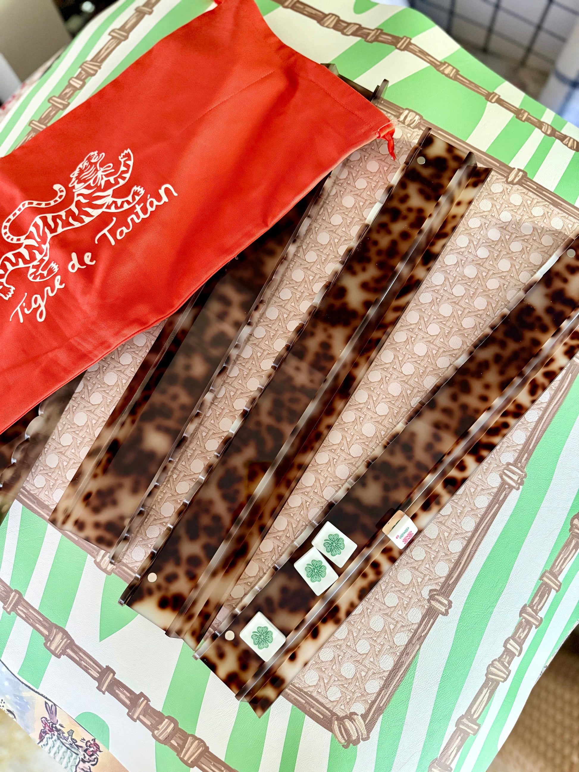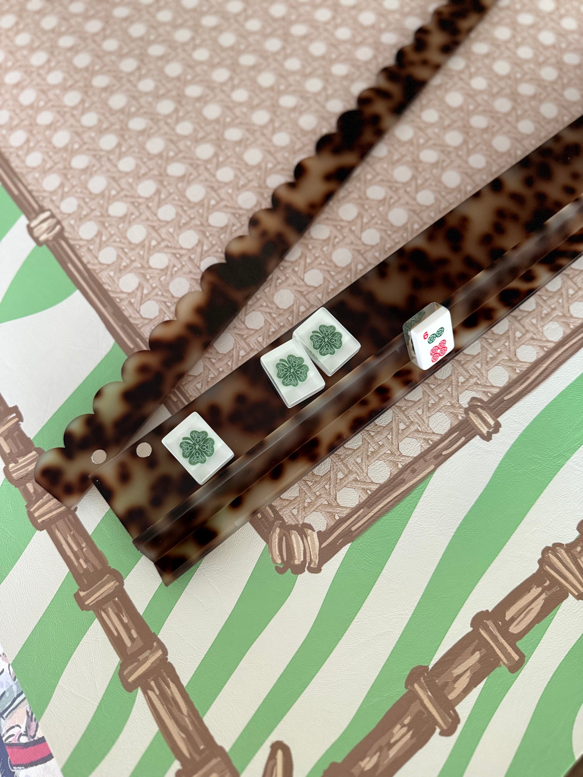 **MARCH PREORDER Tortoise Scalloped Acrylic Mahjong Racks with Magnetic Pushers, SET of 4, With Dust Bag