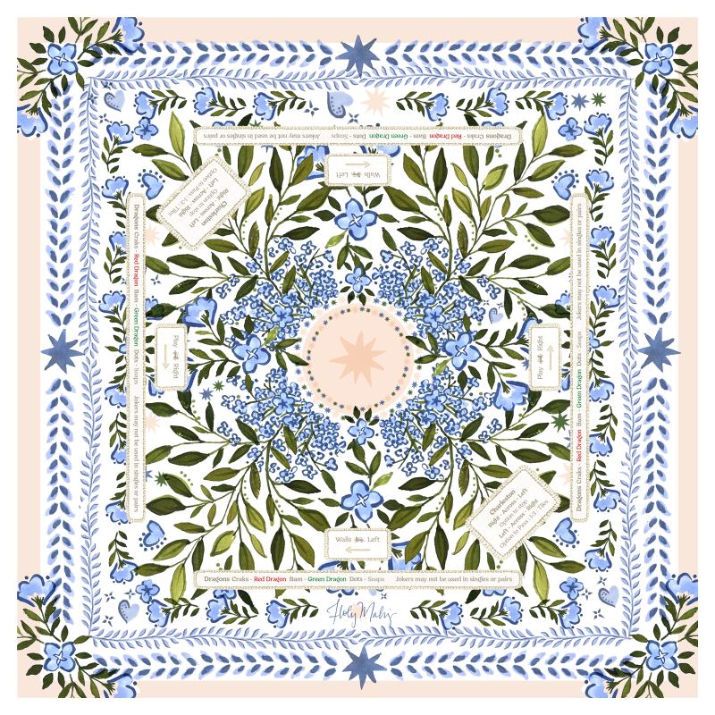 HOLY MAHJ Mahjong Gaming Mat, Bluest Blooms ***RULES EDITION