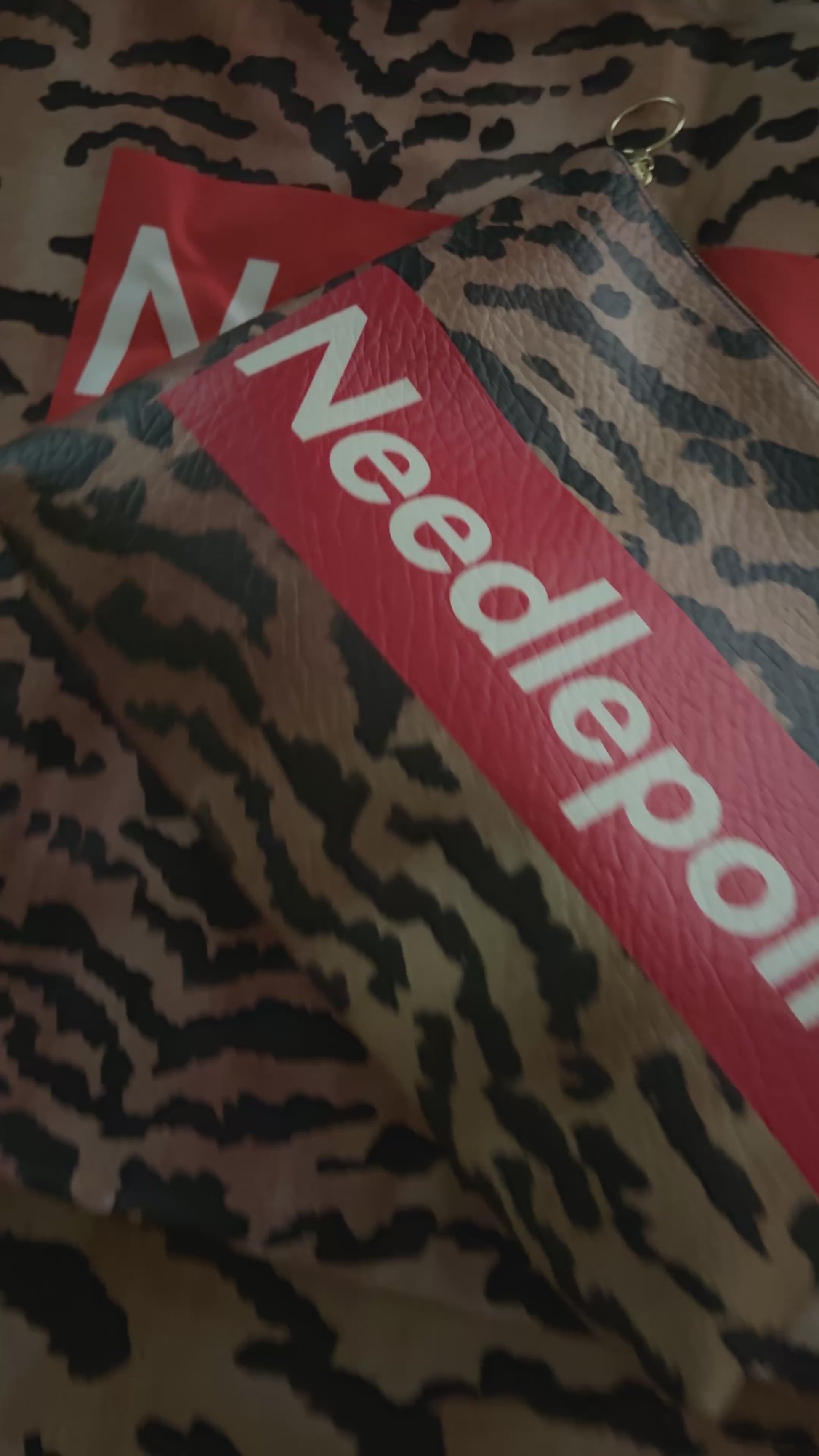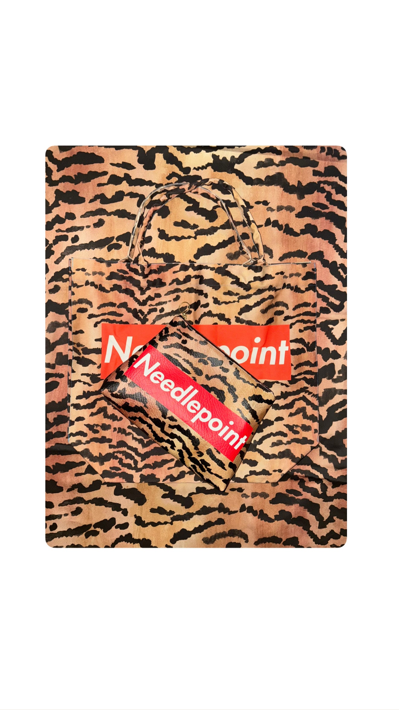What better way to show your enthusiasm than with this snappy, slouchy, fun denim tote? Not everyone knows you love needlepoint- let's take care of that shall we? The quality of this bag will impress you- a beautiful painted ombre tiger print, and an iconic badge in the center- it's love!