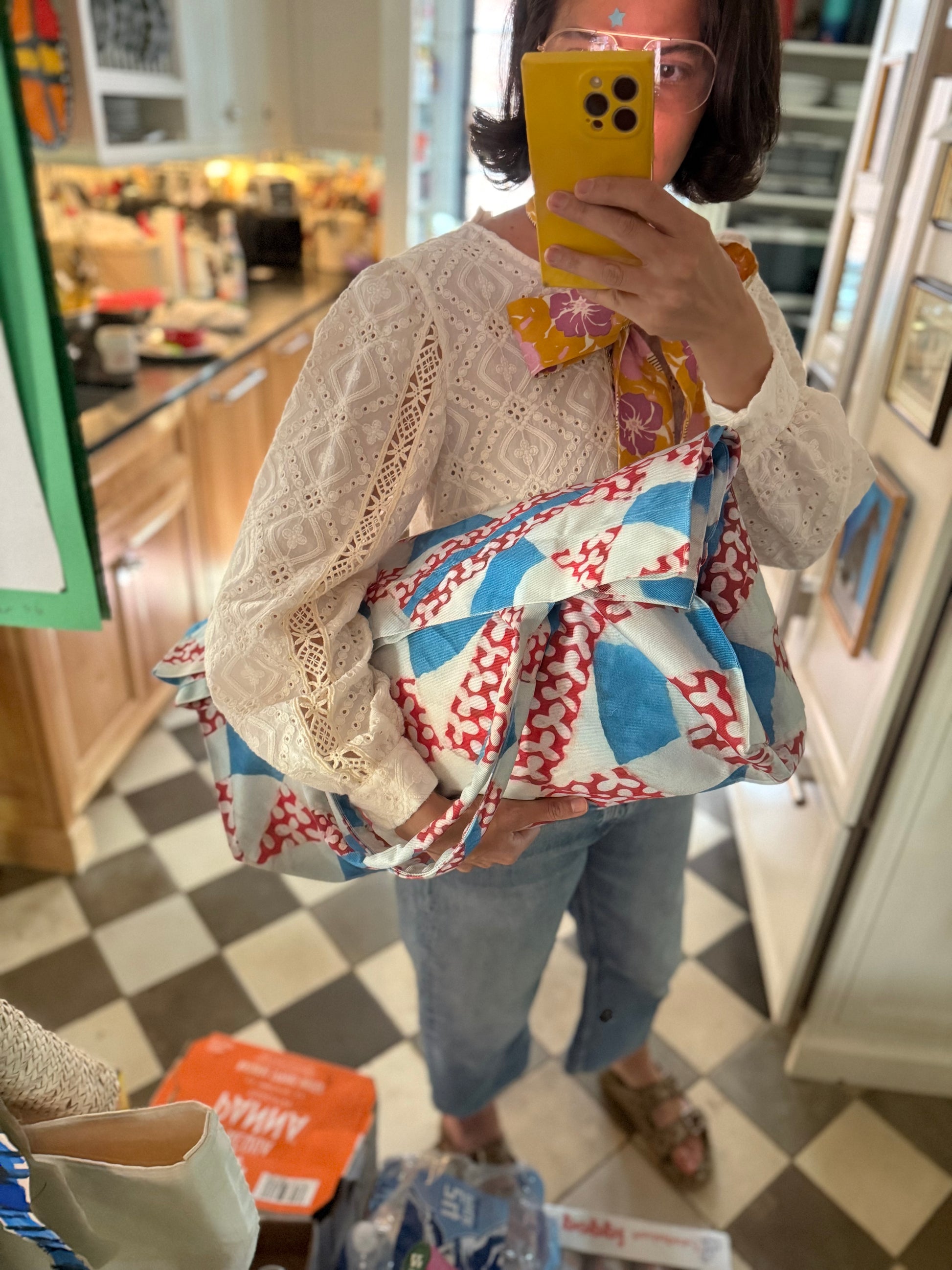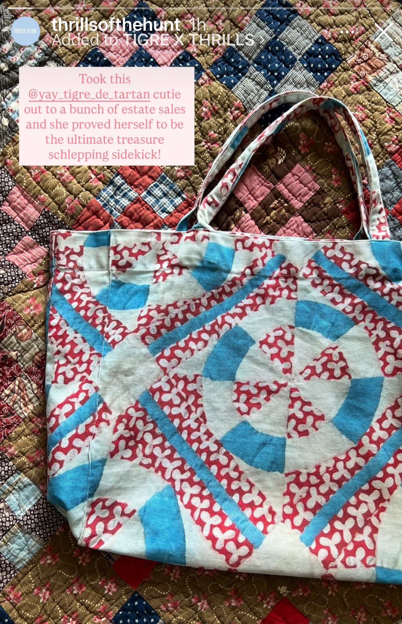 This tote is part of a special collaboration between Tigre de Tartán and Jess of Thrills of the Hunt, a Tennessee-based brand celebrated for uncovering and preserving Americana textile treasures.