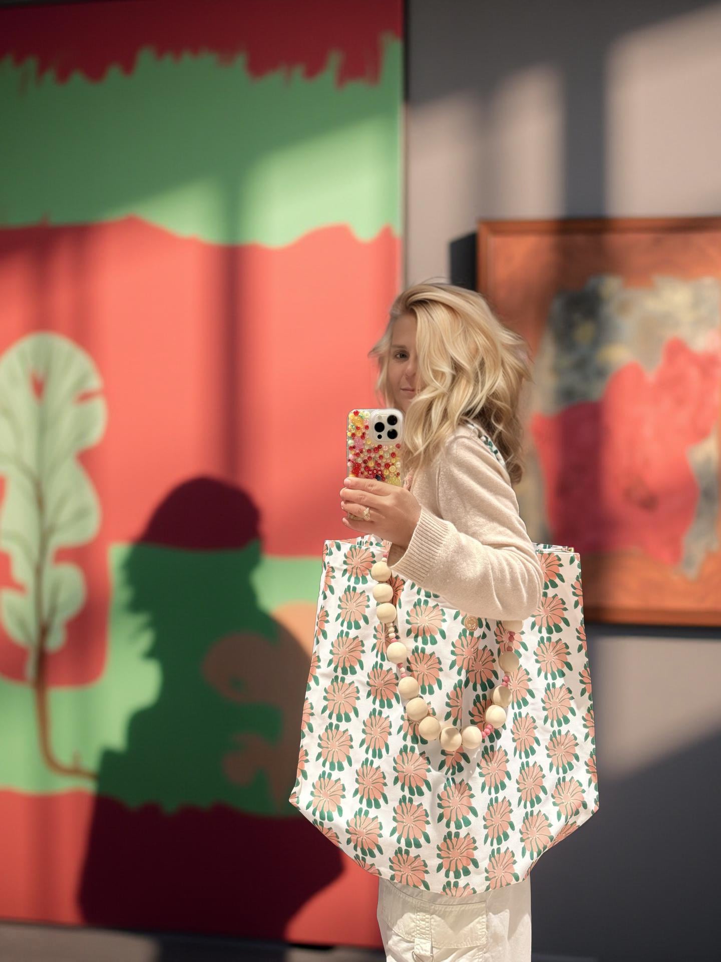 Crafted by Katie herself, this playful and bold bag charm adds a fun touch to any of her collections—or offers a lively twist when paired with a differently patterned tote. Large yet light, it’s versatile enough to wear as a standout necklace too. Limited run- made by hand by the artist.