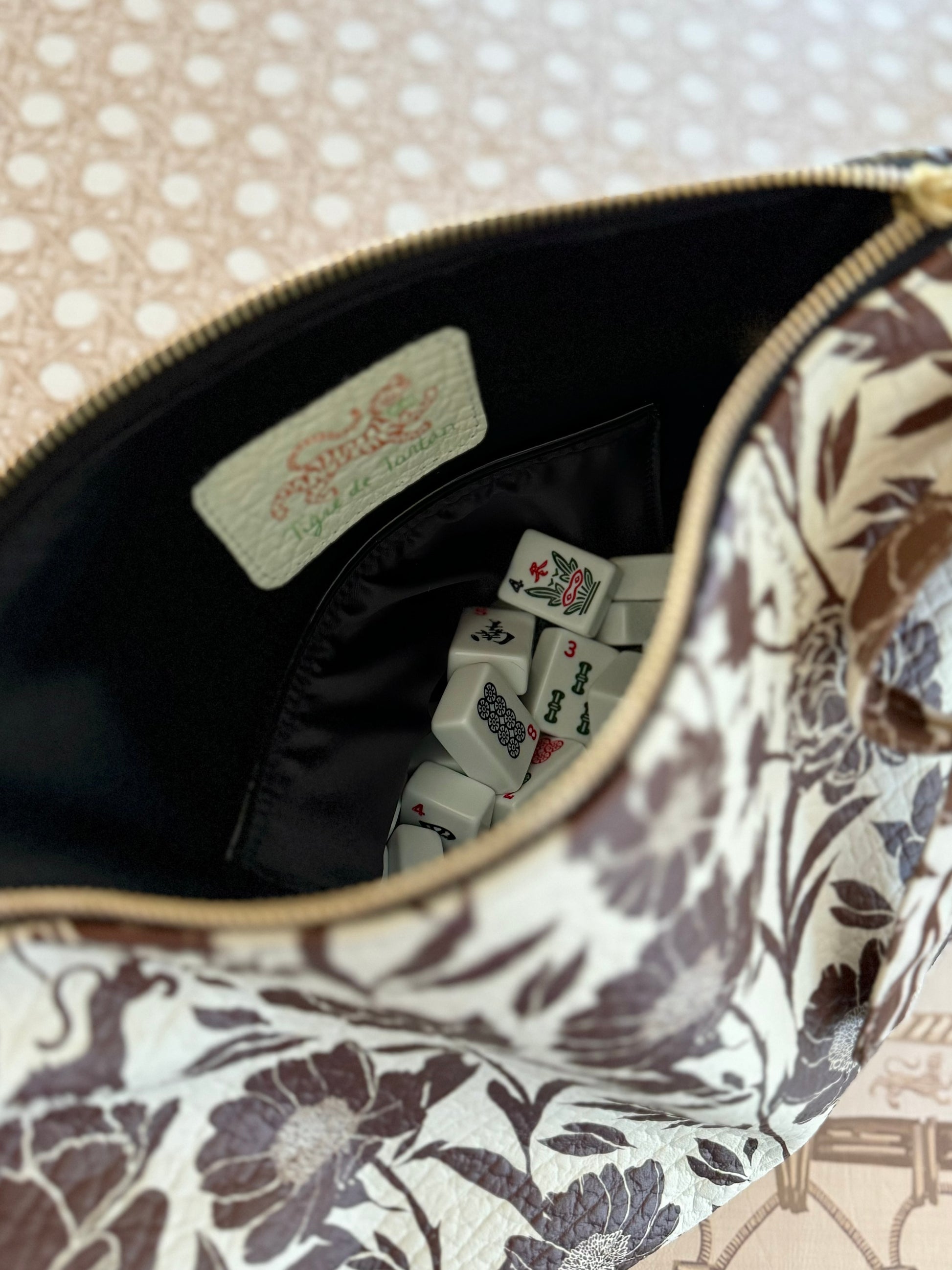 Roomy Leather Mahjong Tile Bag, MAHJ CANNAGE BLONDE