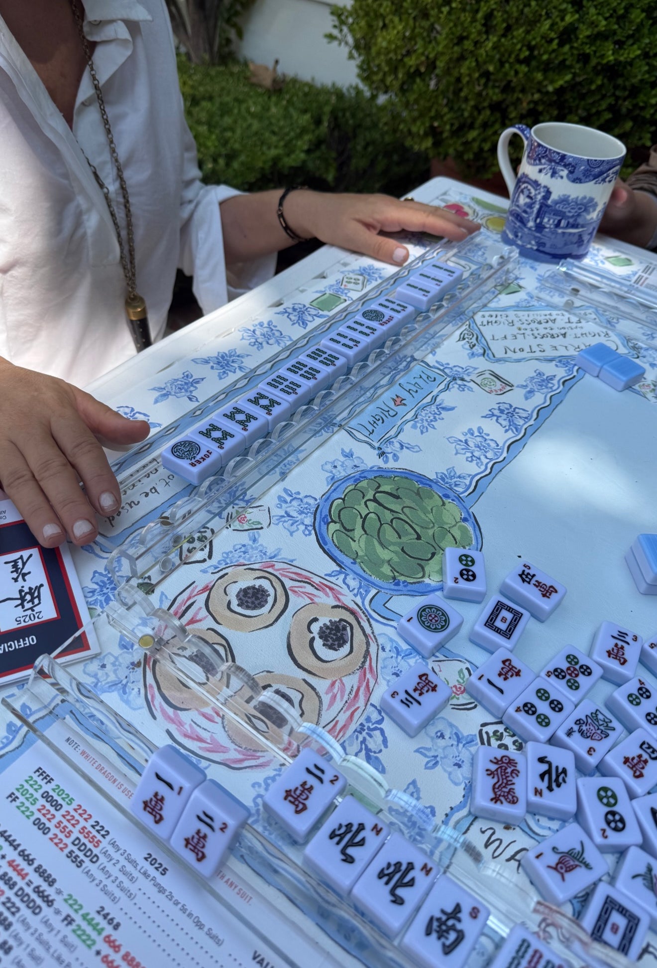 Make some mahj memories for all of your guests with this enchanting "Mahj and Martinis" edition mat by Paige Spearin! Keep track of all of the basic rules as well as enjoy some playful snack illustrations and a gorgeous watercolor effect. Keep your card table tidy with a touch of fun!