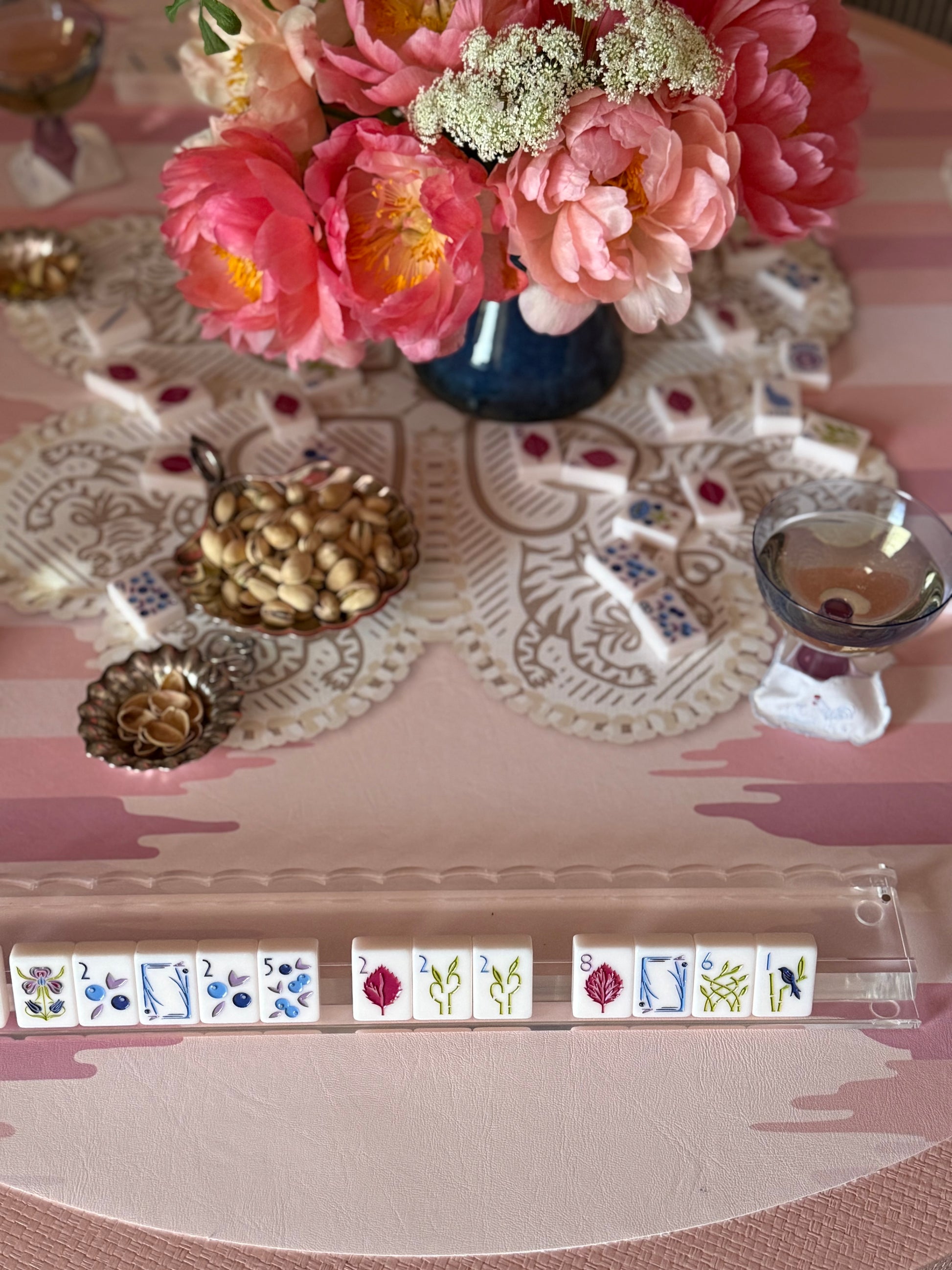 Printed on luxe leatherette and measuring a generous 31.5" square, it’s made for mahjong nights that feel a little like magic — and afternoons that turn into parties.