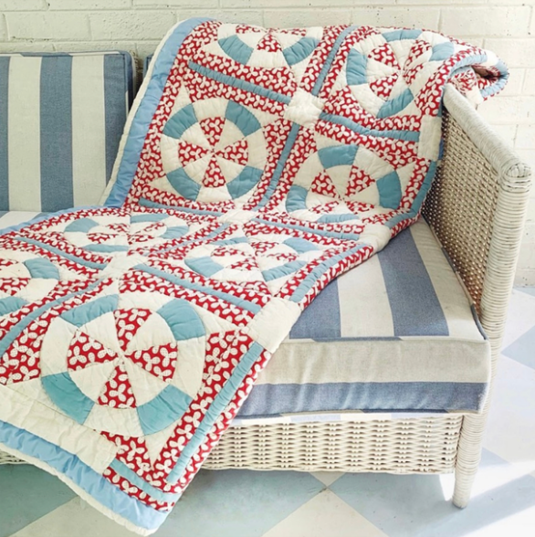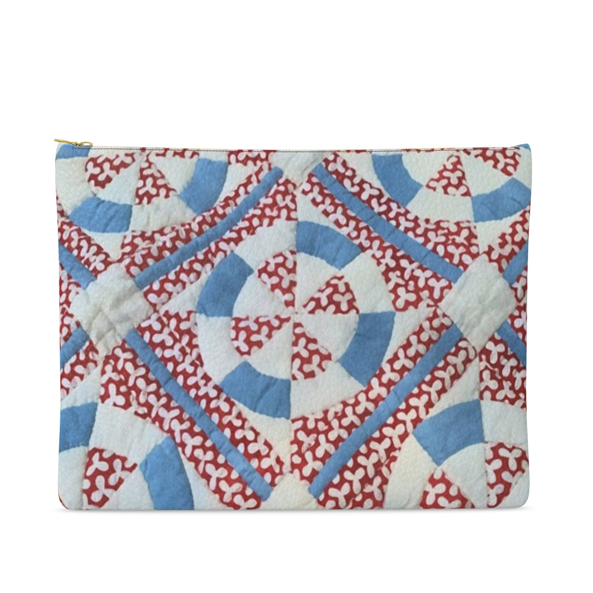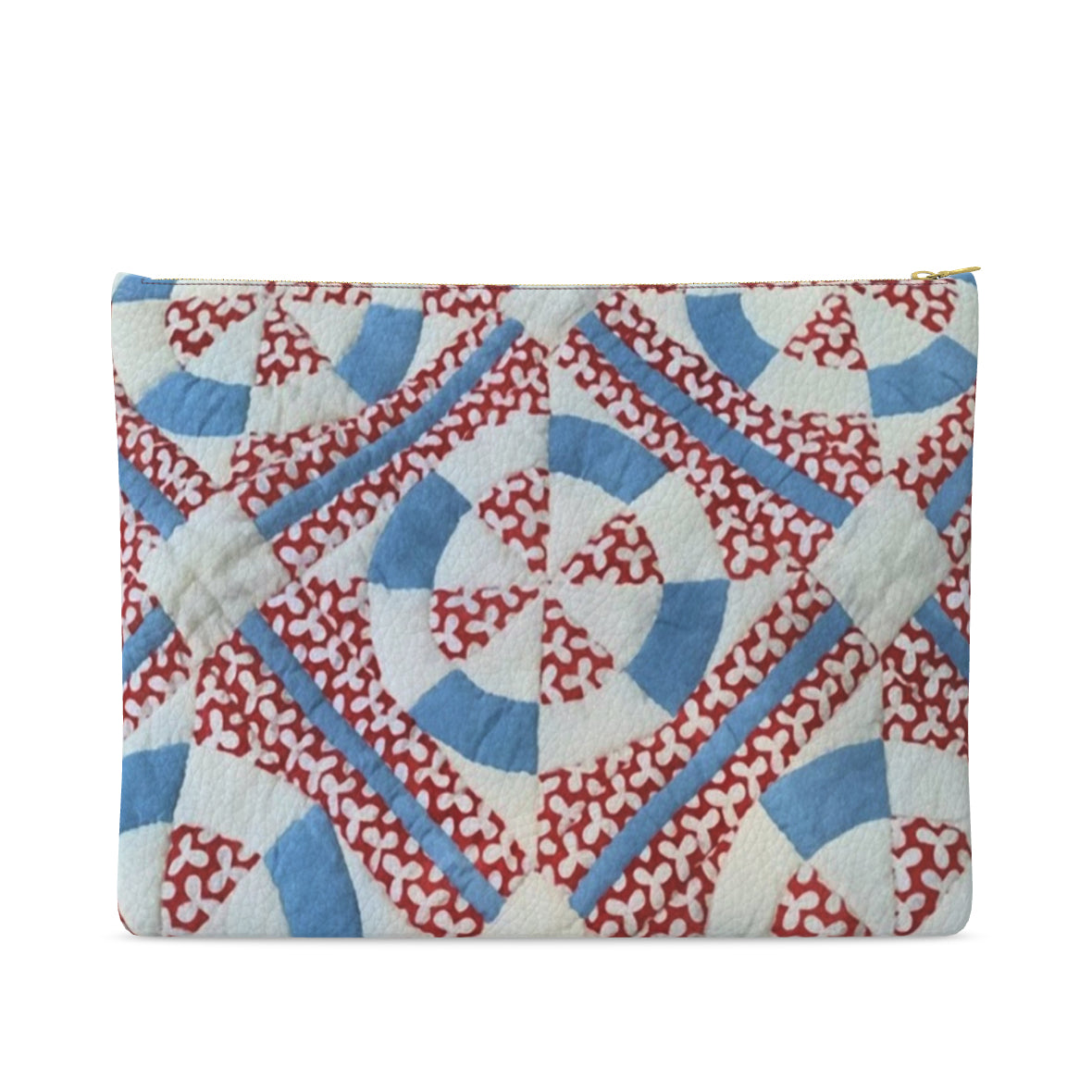 The Union Crossing design transforms the quilt’s intersecting arcs into an exclusive custom illustration, rendered and printed on textured Nappa leather. Abstract and artistic up close, geometric and heritage-rich from afar.