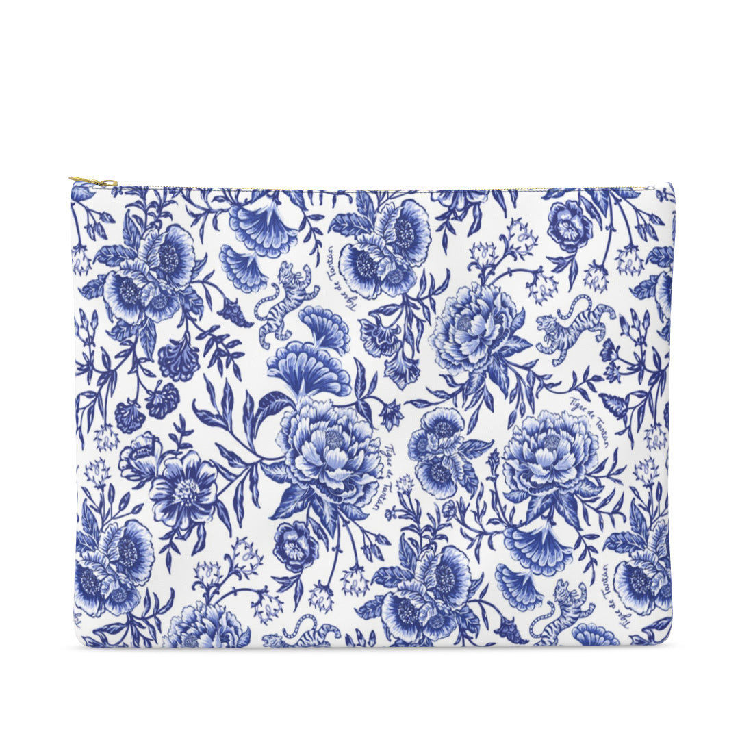 Make a stylish statement with this charming chinoiserie design, guaranteed to delight anyone you encounter during your daily escapades! This petite yet roomy pouch is brought to life by an independent female artist. Each of the elements, including our signature trompe l'oeil gold buttons, are carefully drawn and custom printed on textured Nappa leather. Hand made to order in London, England.