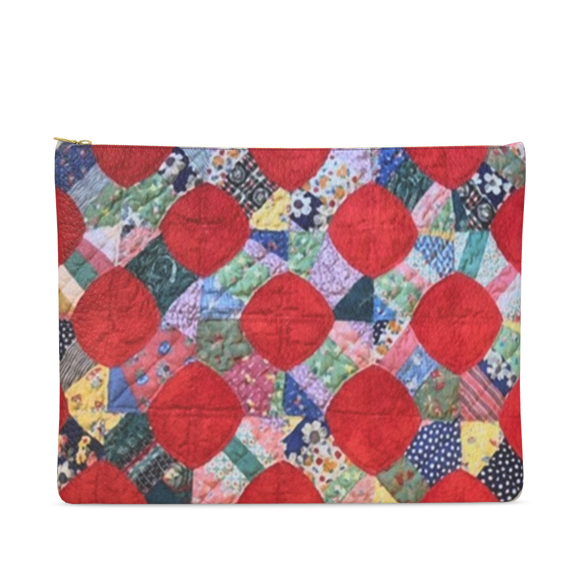 The Macintosh design began with a vintage Snowball Quilt from Jess’s archive. Tigre de Tartán transformed its appliquéd red circles into an exclusive custom illustration, painterly in execution and printed on textured Nappa leather. The effect: abstract up close, crisp and apple-bright from afar.