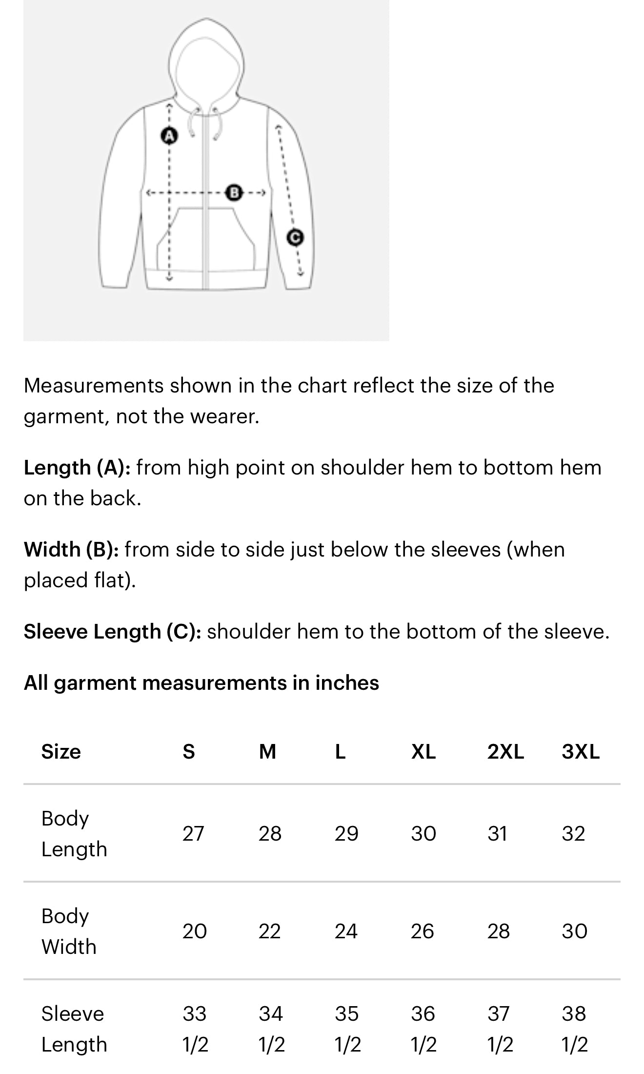 measurements in inches: