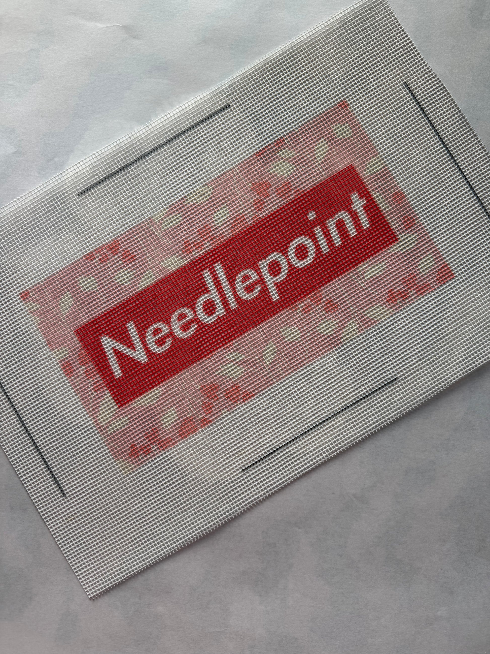 This canvas takes something traditionally feminine- needlepoint itself- and starts a conversation about what it means to be a girl. A bold red box with stark white lettering cuts across our signature house floral-and-hearts print, turning the medium into the message. It’s art, it’s cheeky, and it’s a conversation starter both on the frame and once finished.