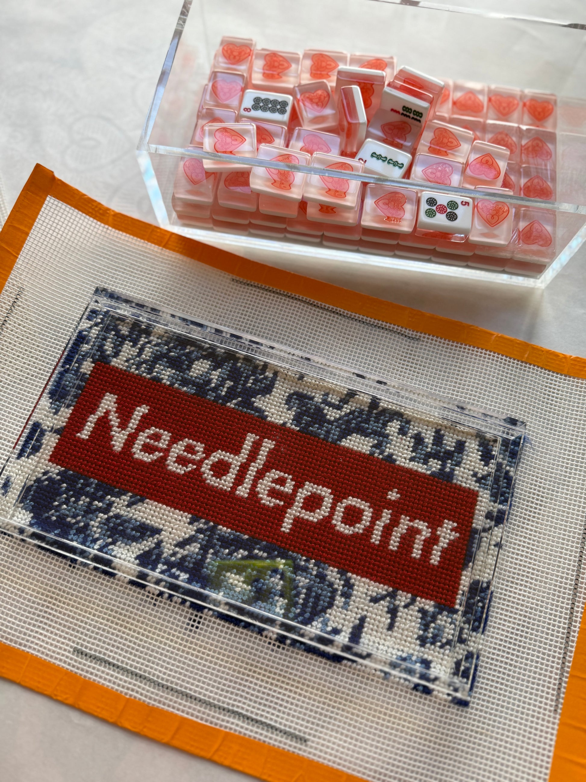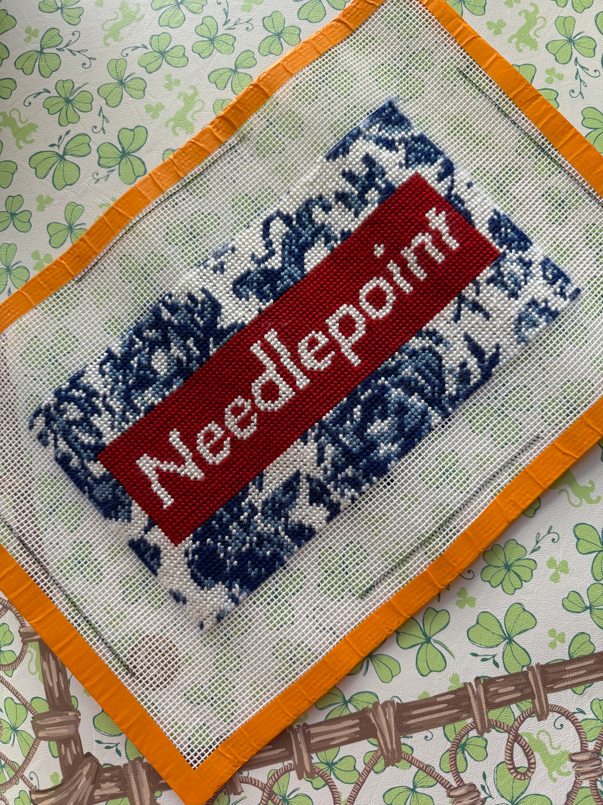 This canvas takes something traditionally feminine- needlepoint itself- and starts a conversation about what it means to be a girl. A bold red box with stark white lettering cuts across our signature house floral chinoiserie print, turning the medium into the message. It’s art, it’s cheeky, and it’s a conversation starter both on the frame and once finished.