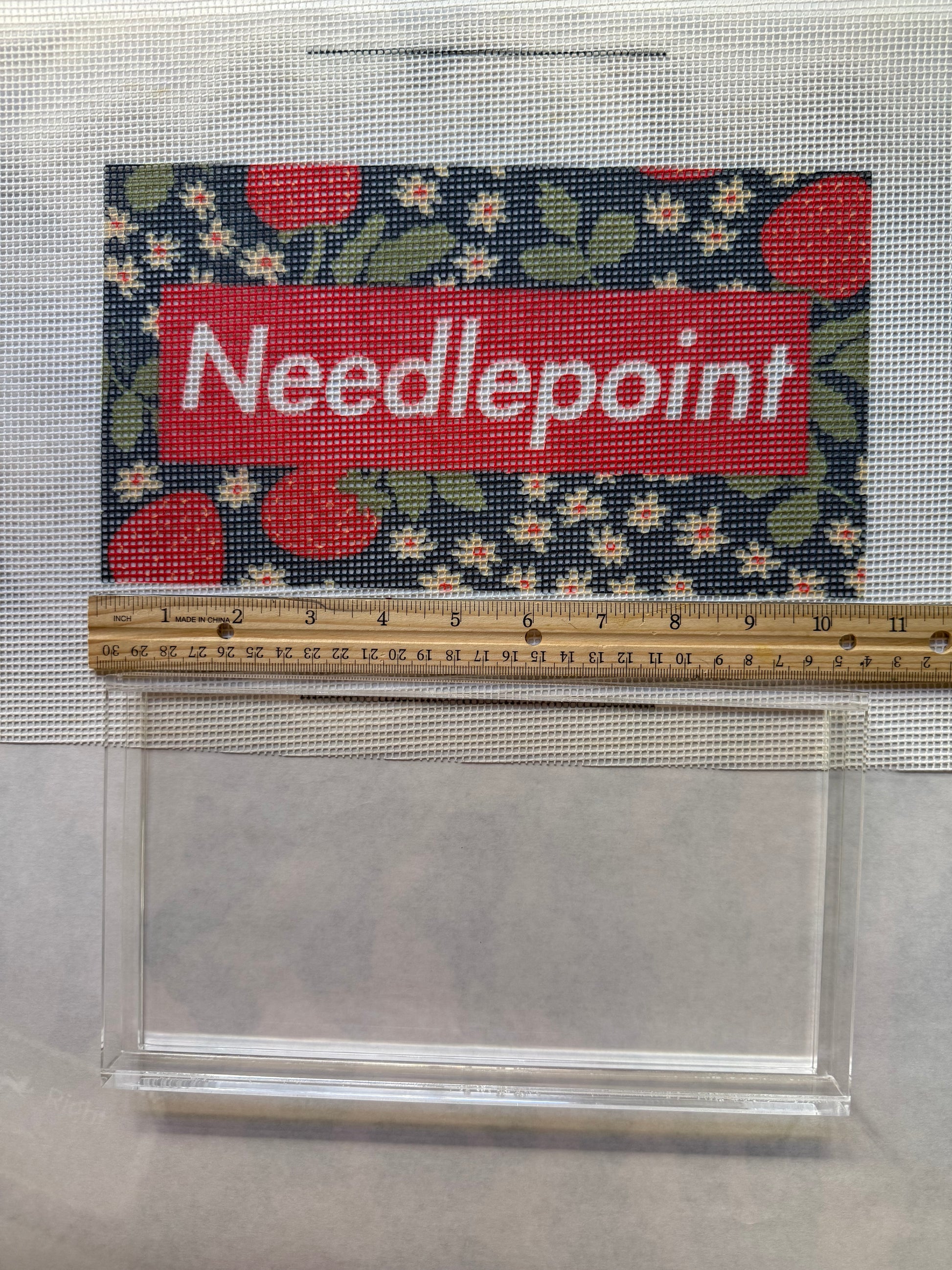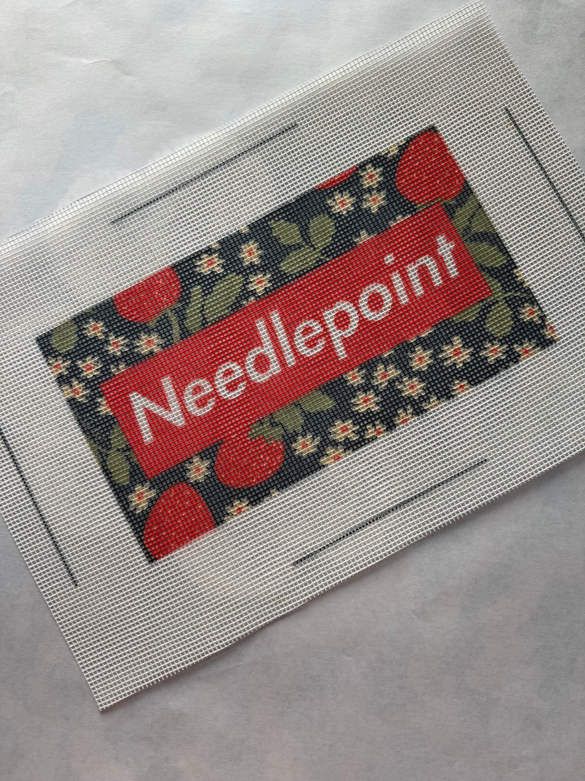 This canvas takes something traditionally feminine- needlepoint itself- and starts a conversation about what it means to be a girl. A bold red box with stark white lettering cuts across our signature house floral-and-fruit print, turning the medium into the message. It’s art, it’s cheeky, and it’s a conversation starter both on the frame and once finished.