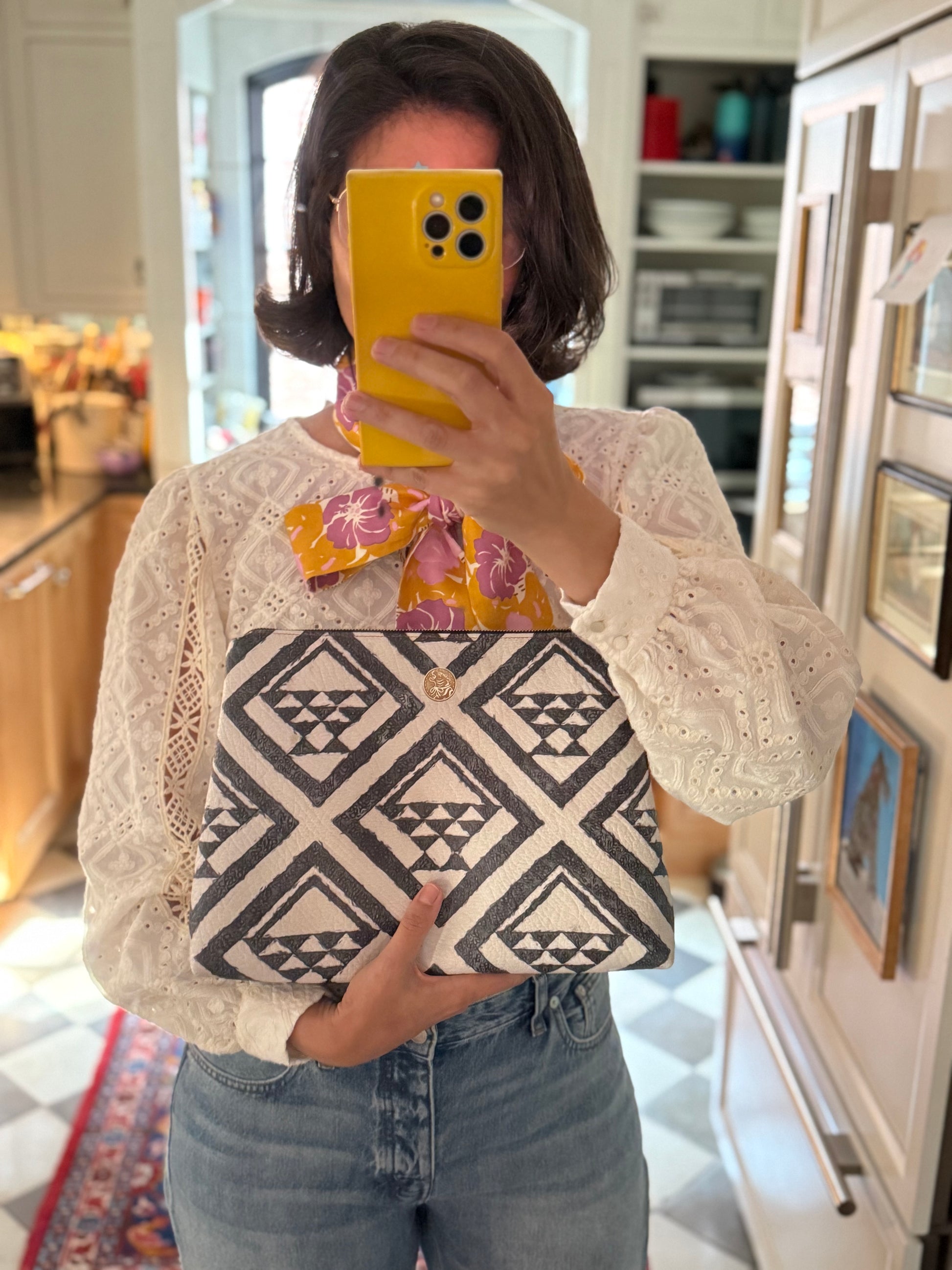 Part of a special collaboration between Tigre de Tartán and Jess of Thrills of the Hunt, this clutch draws from a vintage Basket Quilt in Jess’s collection.