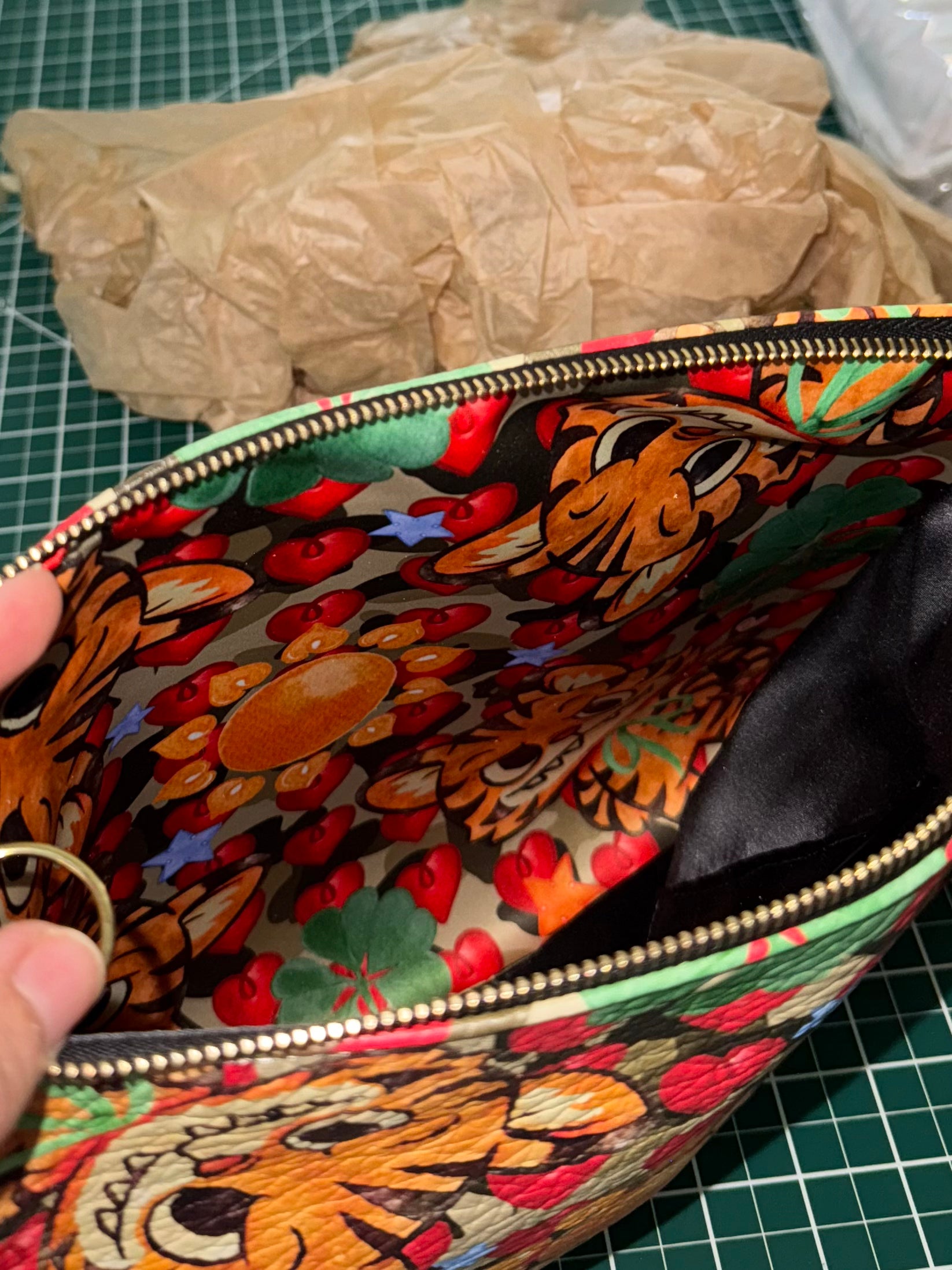 Featuring our exclusive house prints, a satin lined interior and a brass finished finger ring pull, this amply sized bag is sure to keep your tote tidy or keep your style fresh when you want a simple bag on the go! Brought to life by an independent female artist, each of the elements are carefully drawn and custom printed on textured Nappa leather. Hand made to order in London, England.
