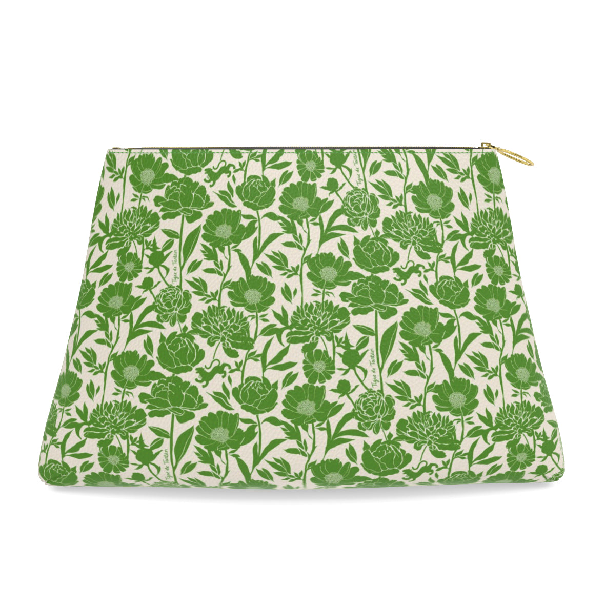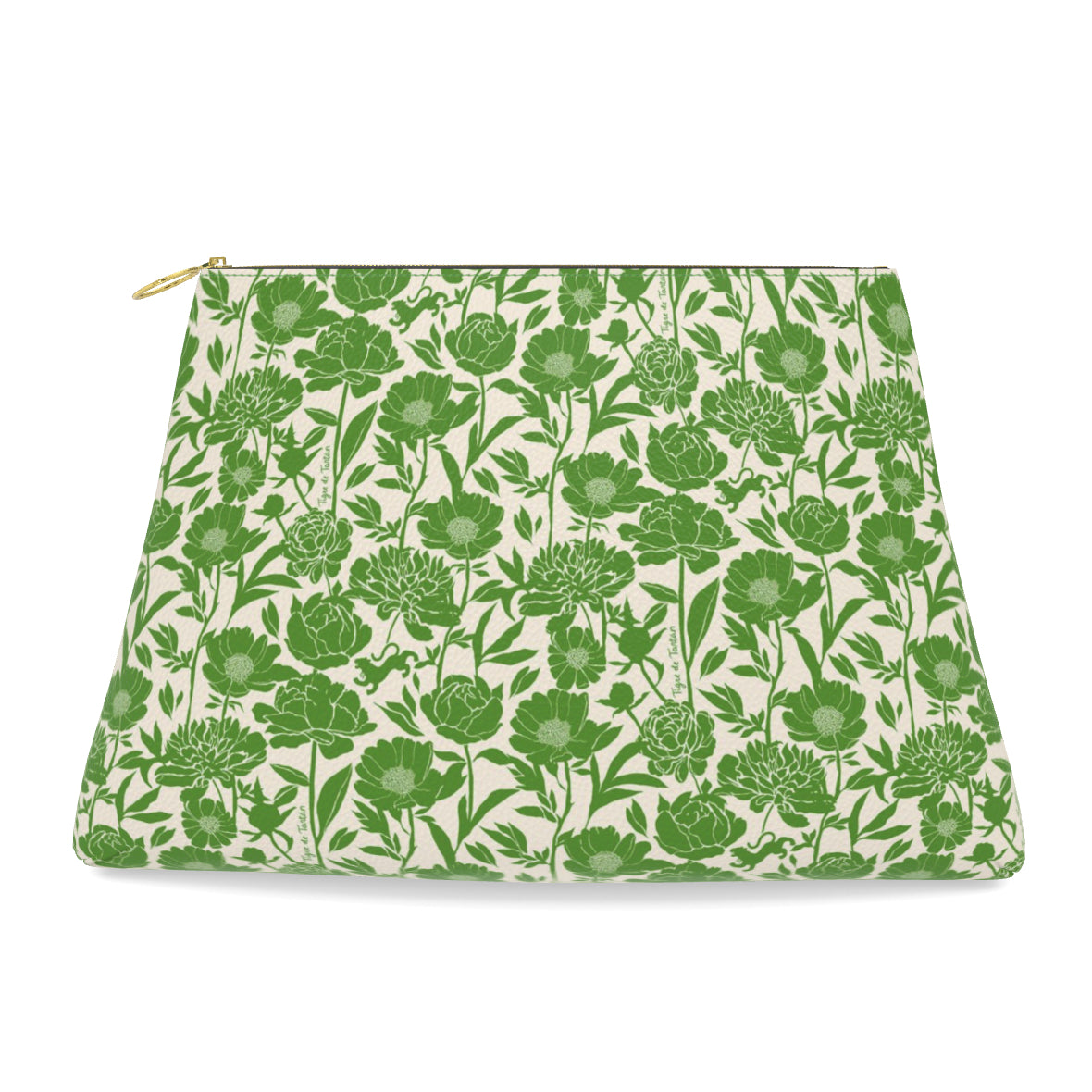 Roomy Leather Clutch/ Tile Bag- JADE PEONY