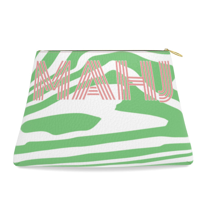 Featuring our exclusive prints, a satin lined interior and a brass finished finger ring pull, this amply sized bag is sure to keep your tote tidy or keep your style fresh when you want a simple bag on the go! Brought to life by an independent female artist, each of the elements are carefully drawn and custom printed on textured Nappa leather. Hand made to order in London, England.