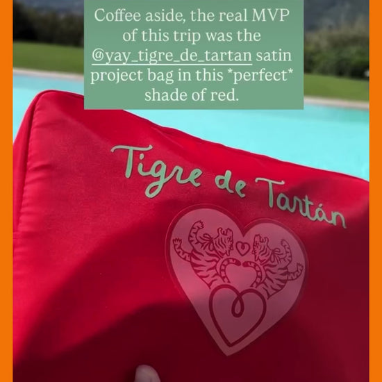 Introducing our smart and versatile project bag, perfect for organizing your needlepoint, makeup, and even mahjong tiles! Our handsome, satiny nylon bag features a clear PVC panel covering the entire front, making it easy to see the contents at a glance and is water resistant and wipeable. A large gold logo pull charm finishes off the monochromatic zipper. Experience the difference these features can make, and enjoy the ease in which you get things done and enjoy doing them with this sturdy and adorable pouch! Cherry red