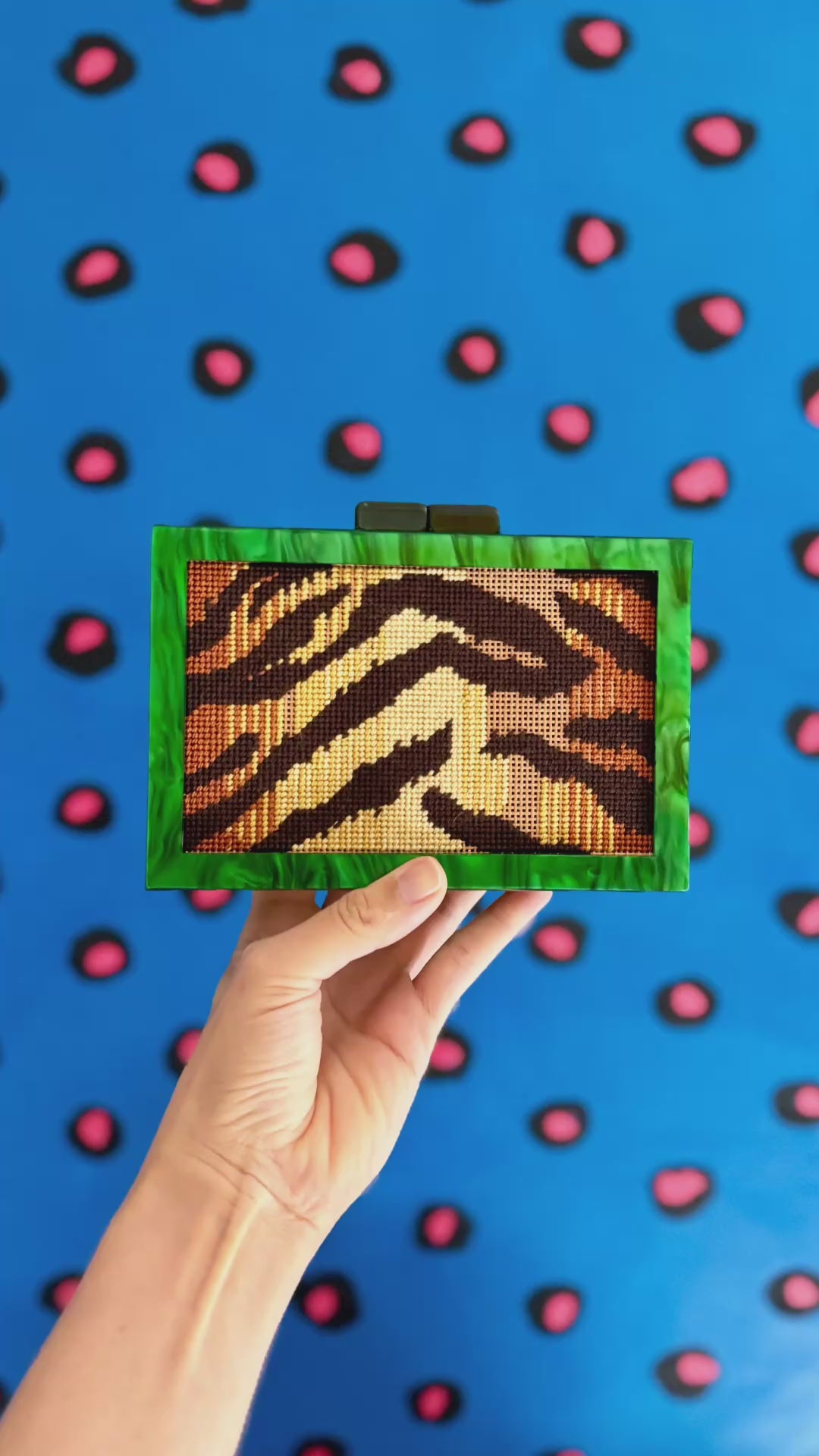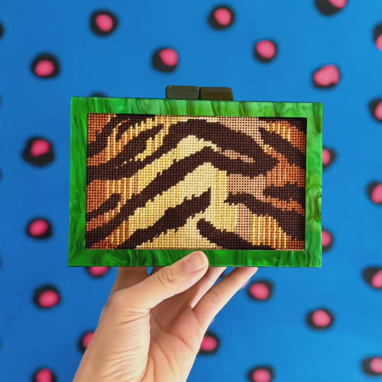 This patented clutch was designed by Blue Canary Canvas, a brilliant woman-owned company that’s reshaping what needlepoint can be. Sheila, the owner, is an absolute gemand generously offered us the chance to carry her exclusive design here at Tigre de Tartán. We’re proud to be one of the few places outside her studio where you can get your hands on one.