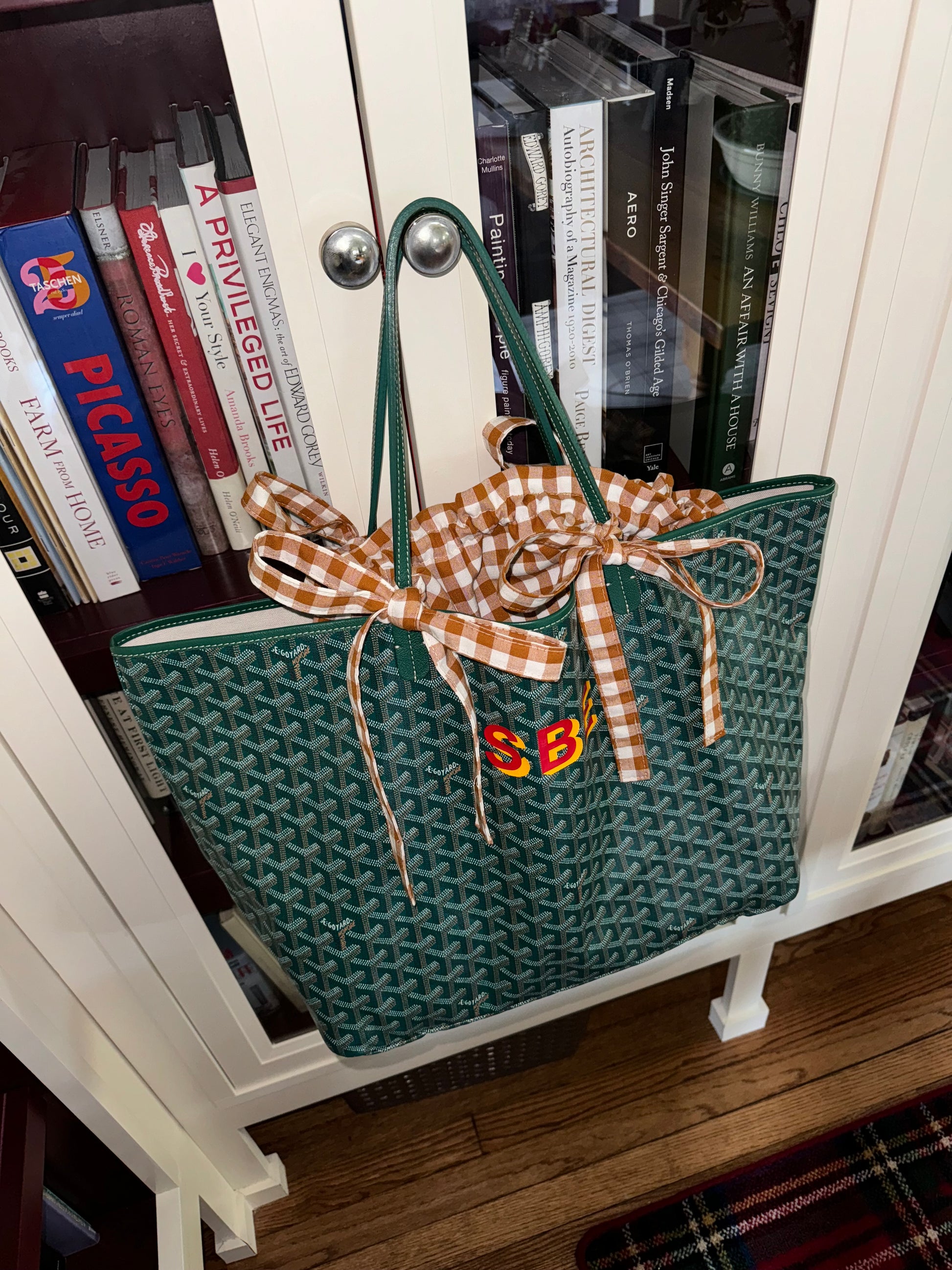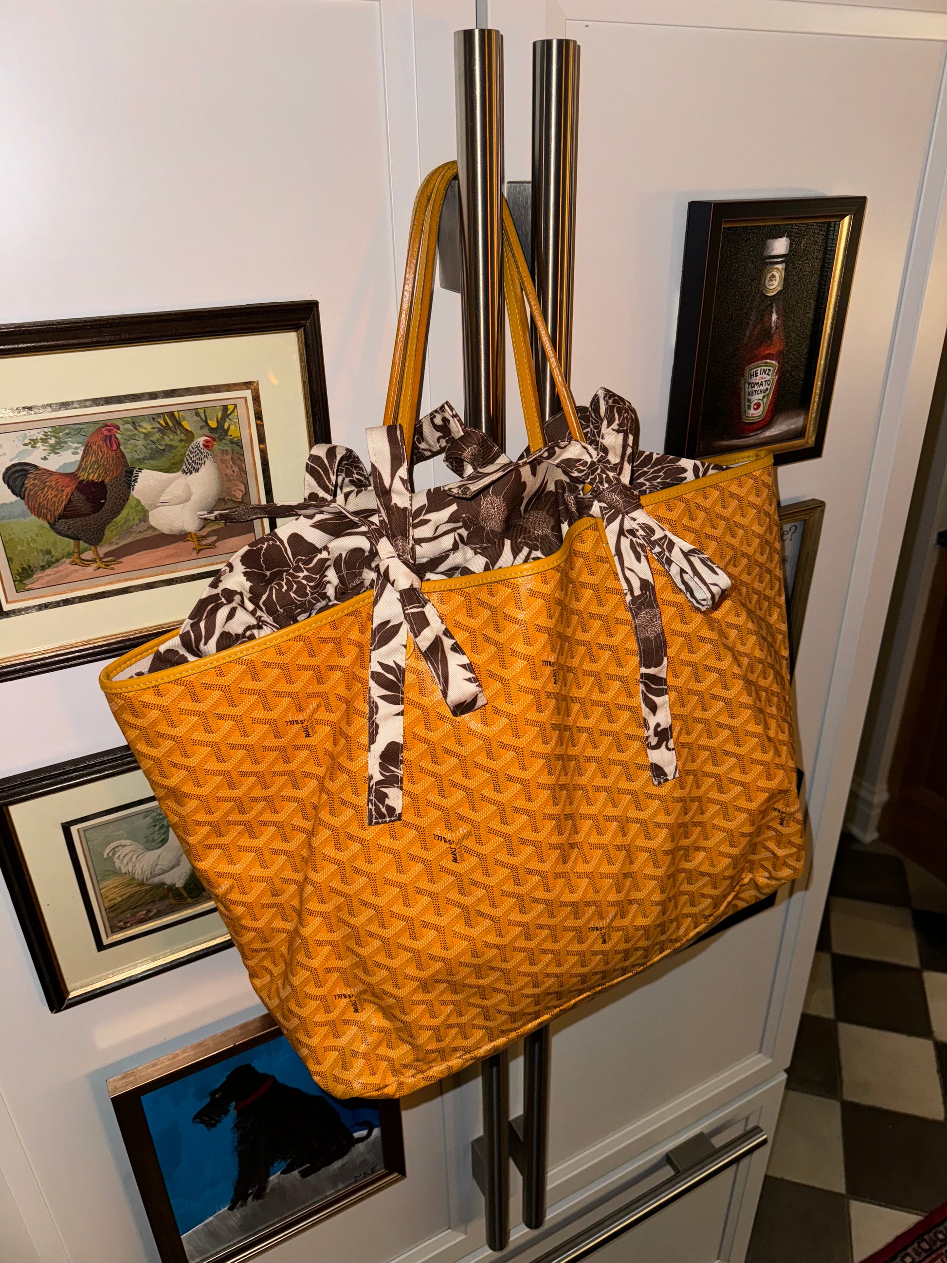 Our insert will fit any open top tote bag with approximate measurements of 14"h x 16"w x 6"d. The liner will adjust within 2" of this measurement. Please email us at hello@tigredetartan.com if you have any questions about fit. Examples of compatible bags: LLBean open top Boat and Tote (large), Lands End open top canvas tote (medium), Goyard St. Louis GM, Louis Vuitton Neverfull GM, Dior Book Tote (large), Gucci Jumbo GG tote bag (large), Bottega Veneta Arco Tote (large), Chloe Woody Tote (large)
