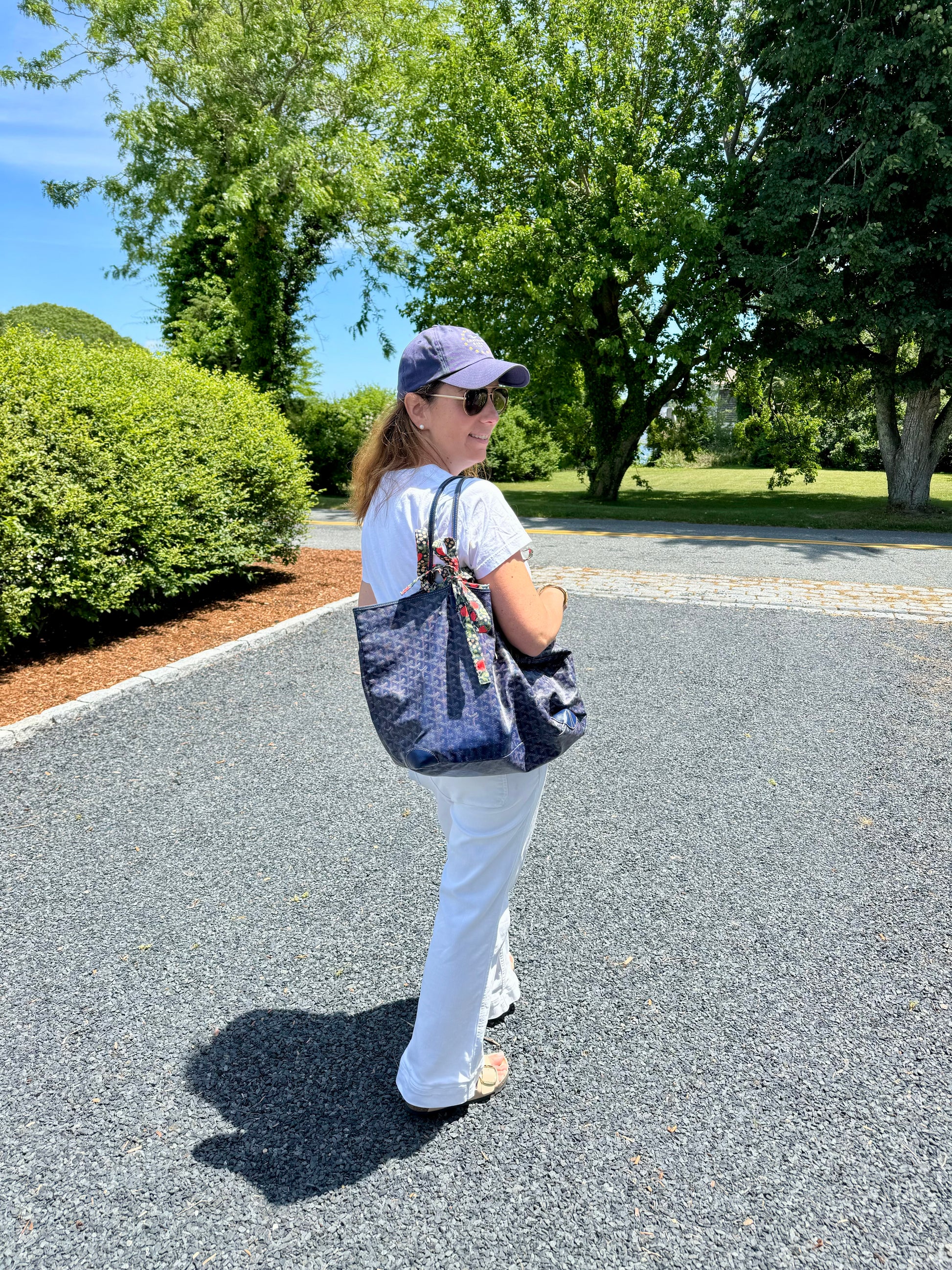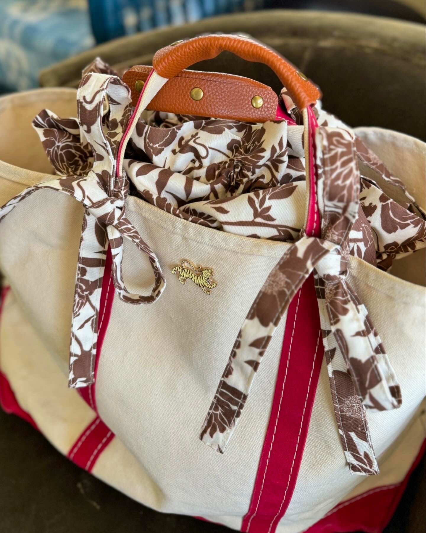 This insert cleverly ties into your open-top designer totes, or dresses up that old boat-n-tote you've had for years. Revive an old favorite, or look after a new one, stylishly! She can also be used as a lightweight backpack!