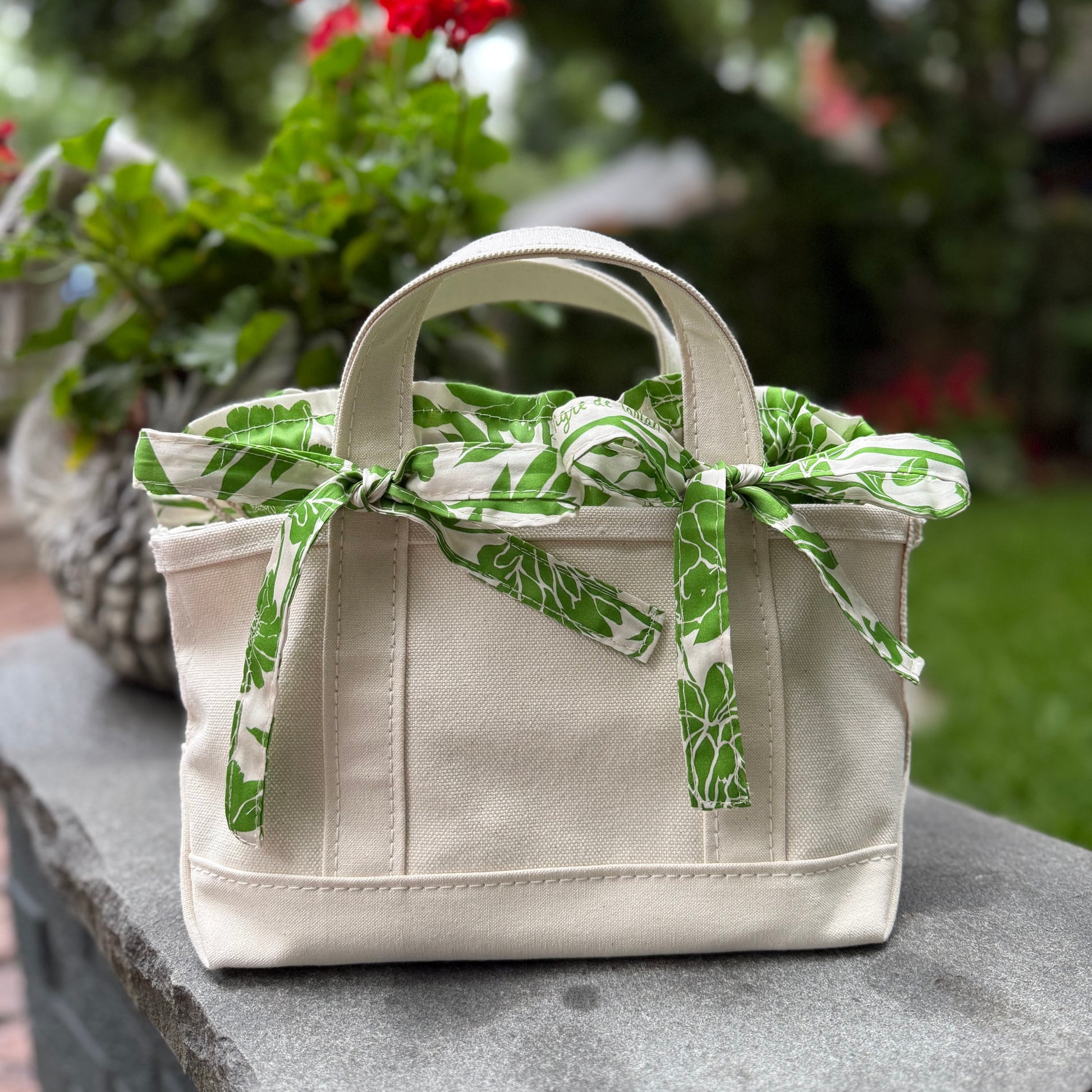 Introducing our USA-made mini insert, thoughtfully designed for those perfectly petite totes taking over your feed (and your life). Made to tie into everything from structured leather to heritage canvas, with just enough give to fit a few sizes. Shown here in our Jade Peonies print, designed by an independent female artist. Classic, quiet, handmade, and exactly what she was missing.
