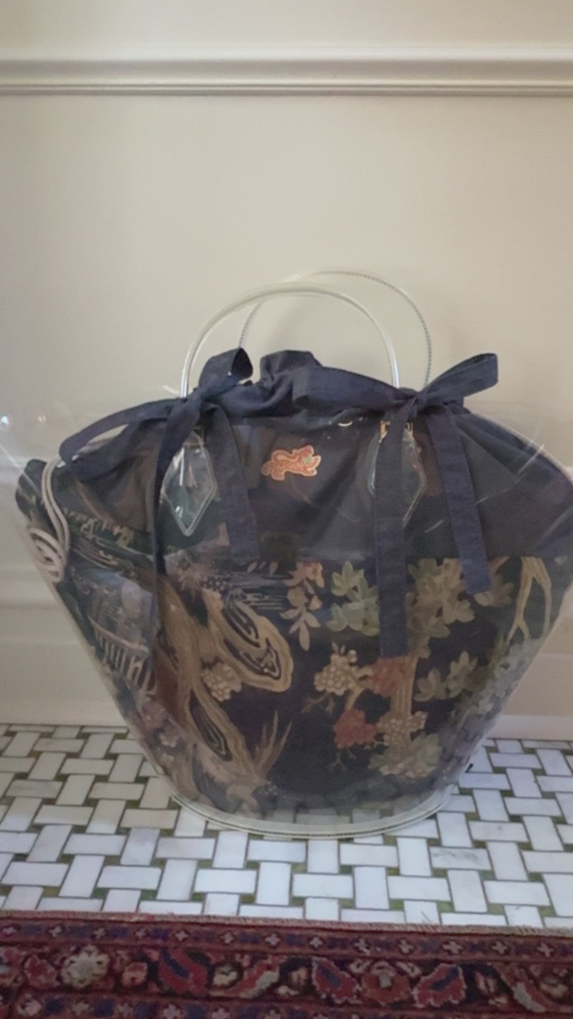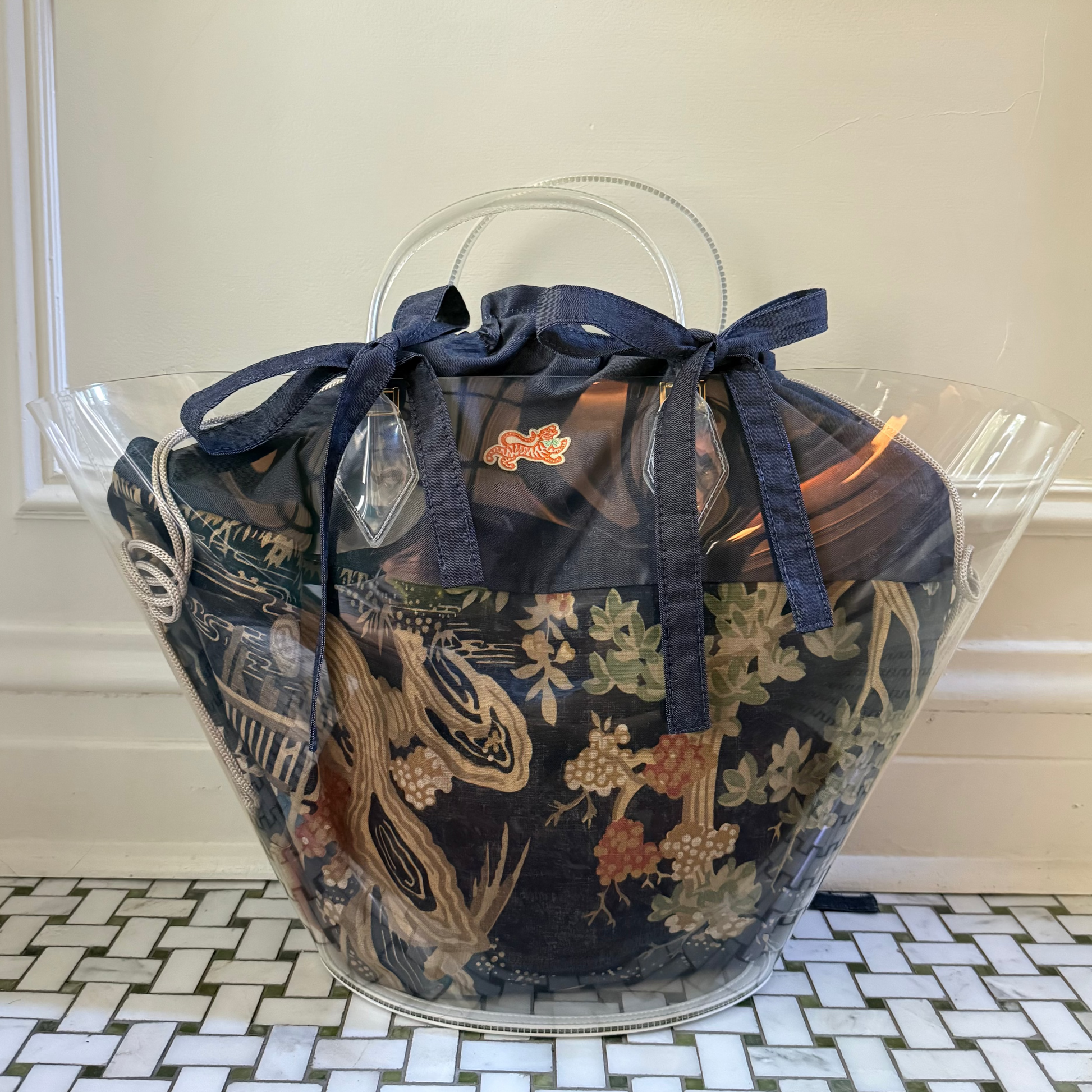 We've made this simple chambray insert for those who would like more of a clean look- maybe you have a flashier bag that you want to be the main focus or maybe you just love navy like we do! There is a very small paisley icon studded throughout the ground, it's very subtle.