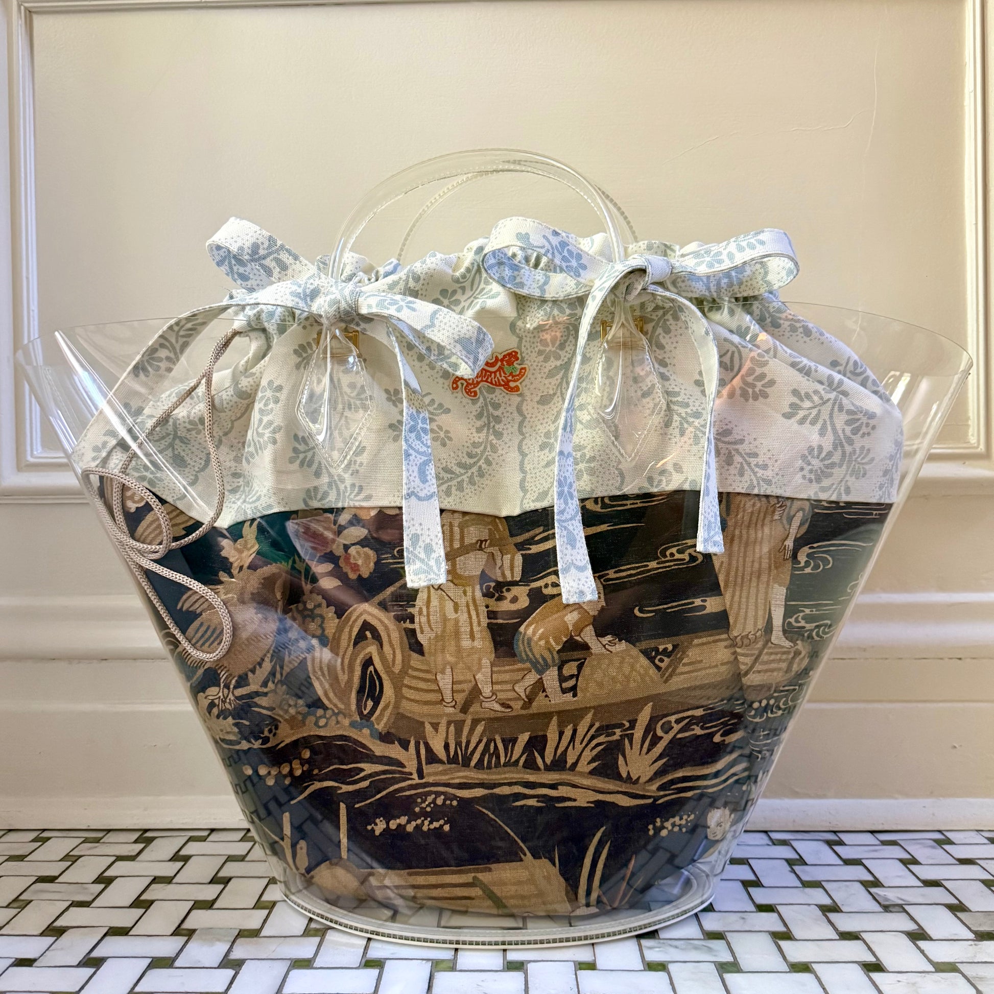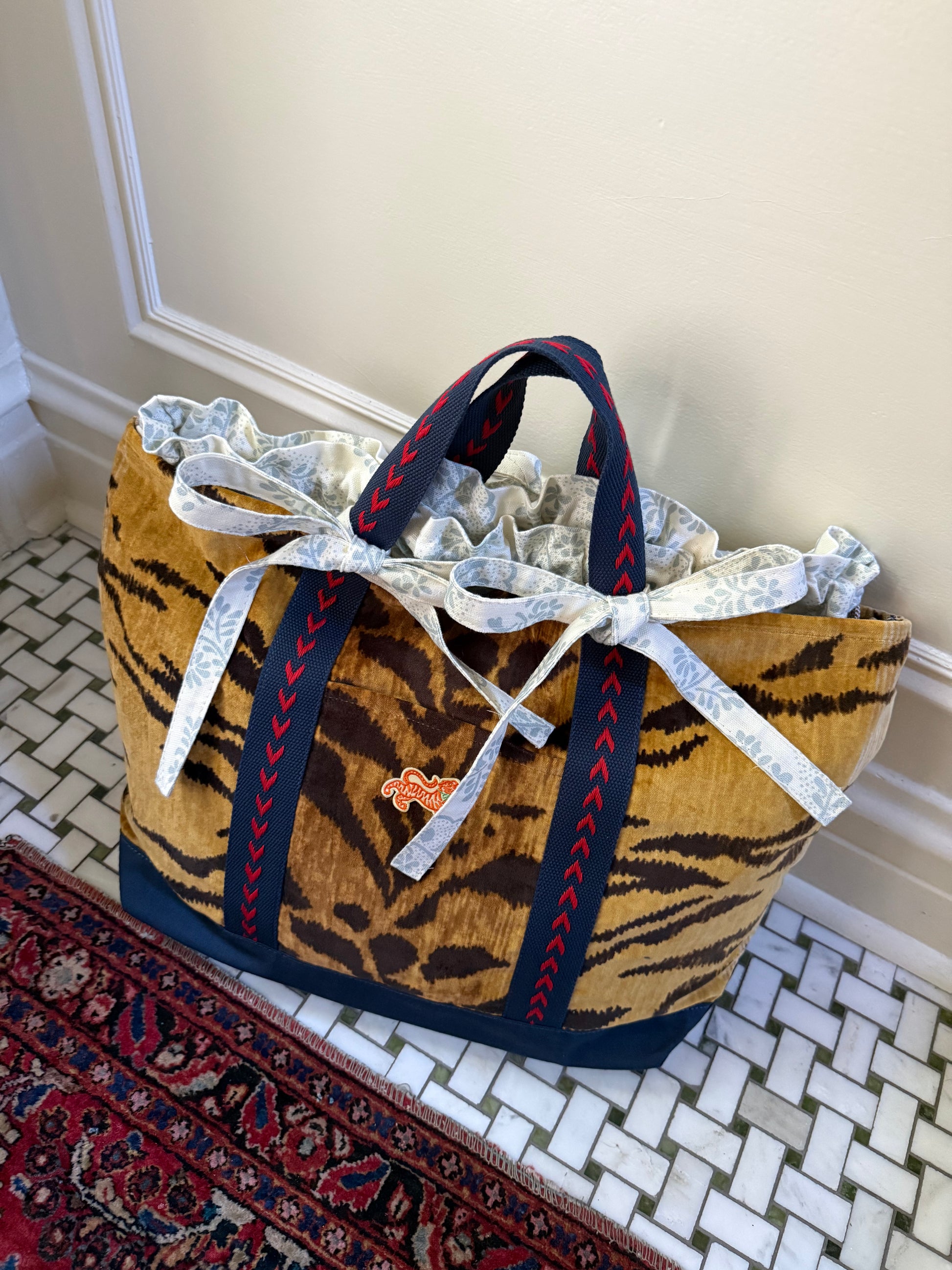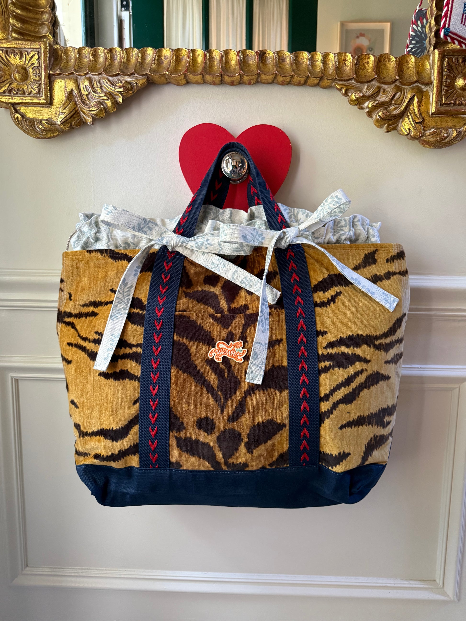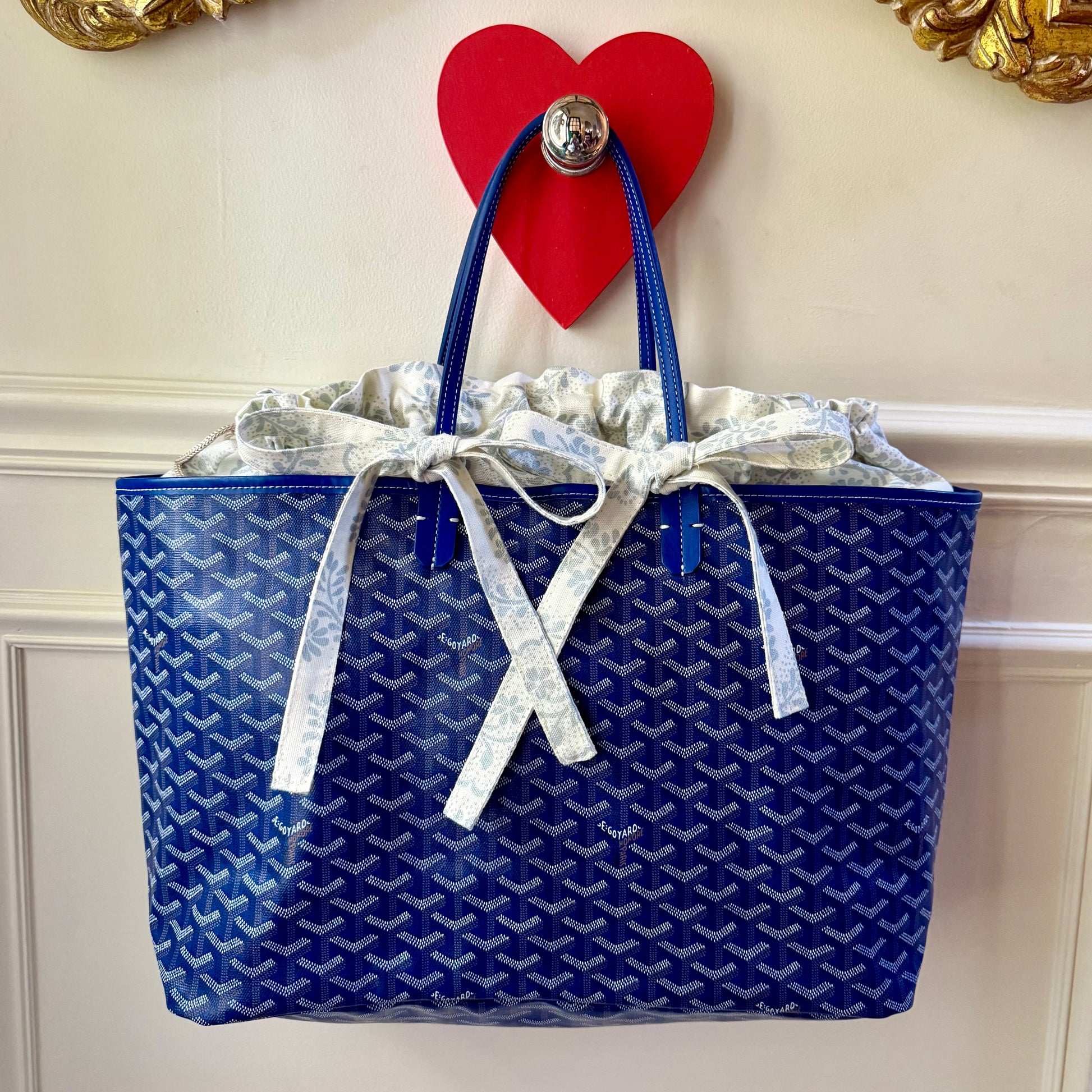 Our insert will fit any open top tote bag with approximate measurements of 14"h x 16"w x 6"d. The liner will adjust within 2" of this measurement. More if you're crafty. Please email us at hello@tigredetartan.com if you have any questions about fit. Examples of compatible bags: LLBean open top Boat and Tote (large), Lands End open top canvas tote (medium), Goyard St. Louis GM, Louis Vuitton Neverfull GM, Dior Book Tote (large), Gucci Jumbo GG tote bag (large), Bottega Veneta Arco Tote (large), Chloe Woody Tote (large)