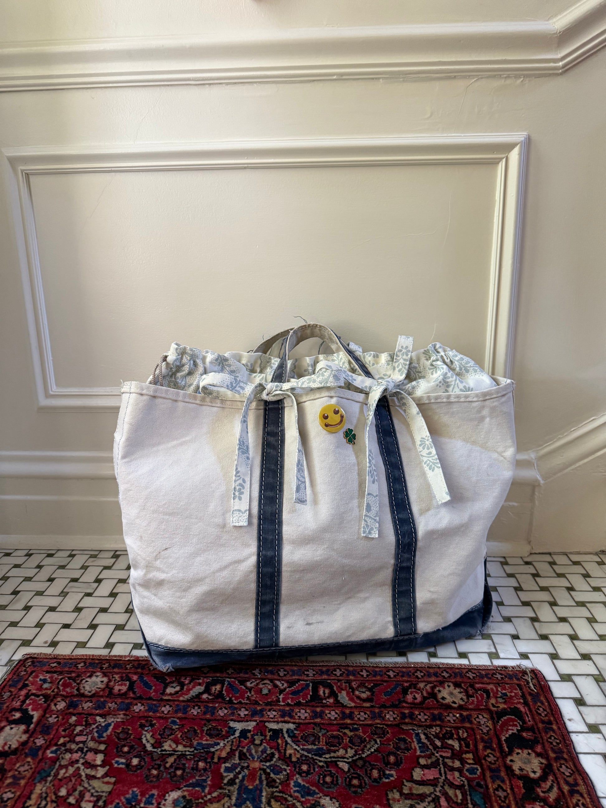 *Tie-on insert. Tote not included. Inserts are meant to tie onto the handles of your tote; that is how it's attached. There is also a drawstring closure for security. Can be worn open or cinched.