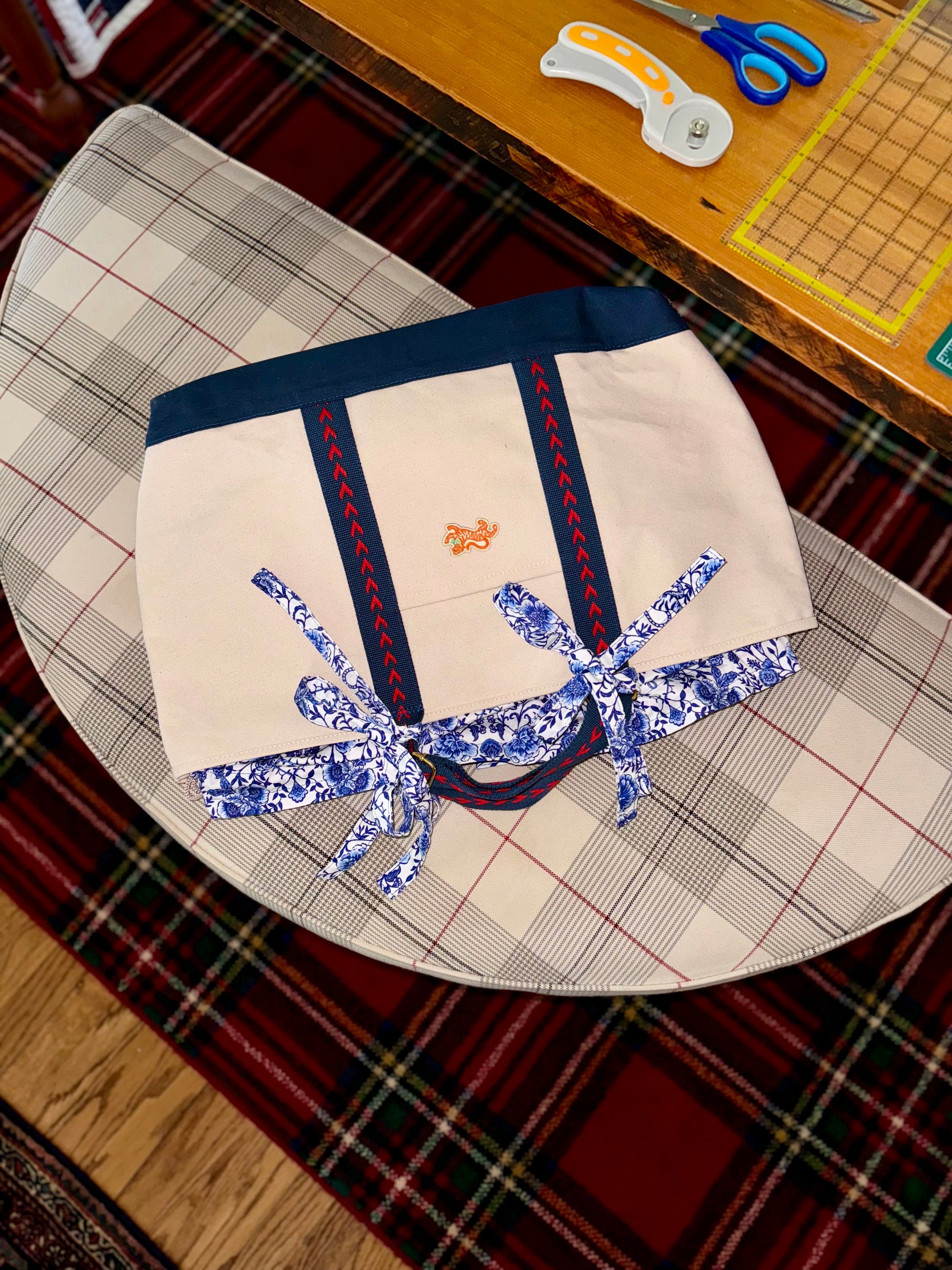 Tigre de Tartán Signature Canvas Tote, NAVY ADJUSTABLE